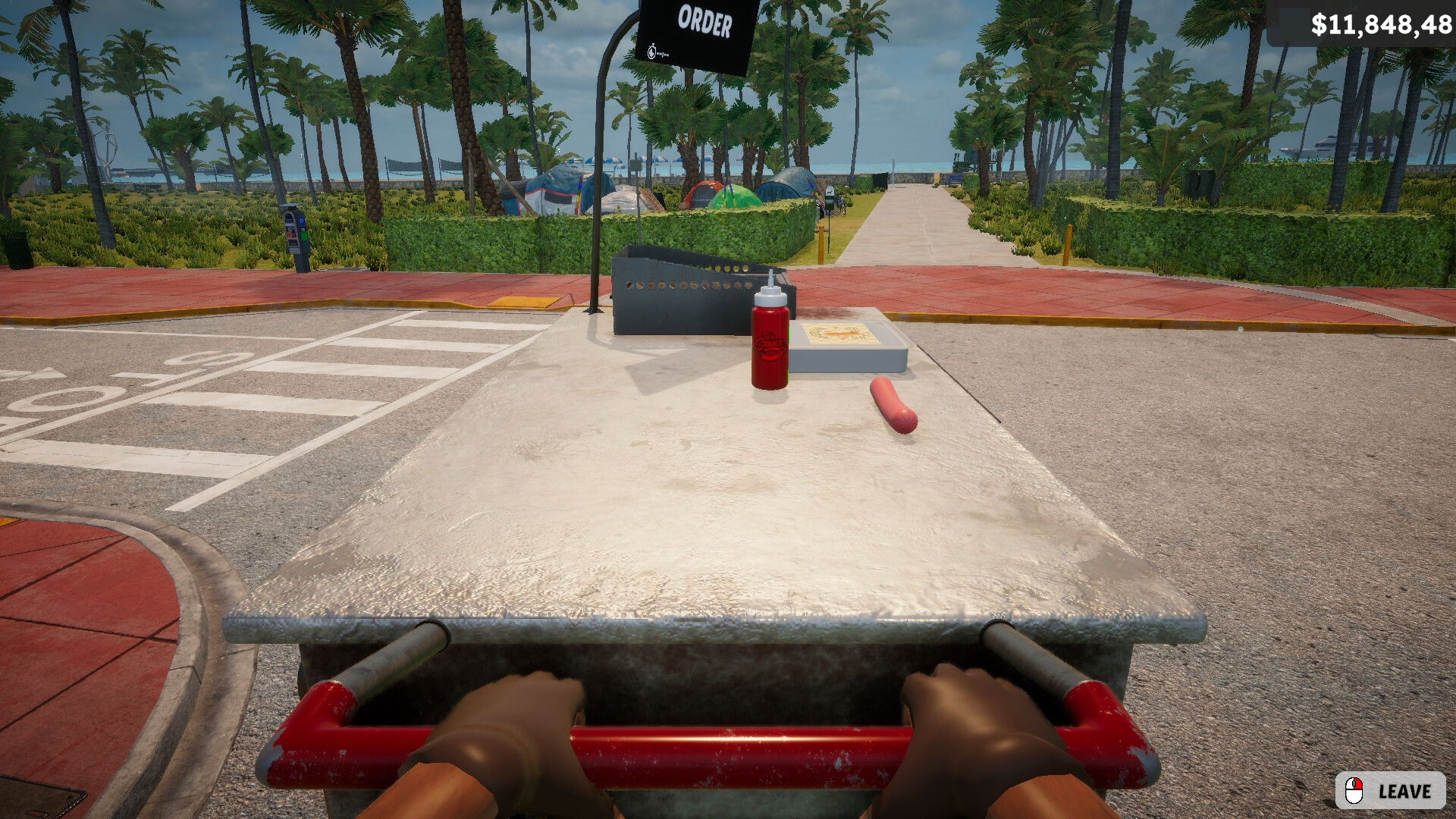 Push your cart and ride through the bustling streets, find the best location to sell your hotdogs.