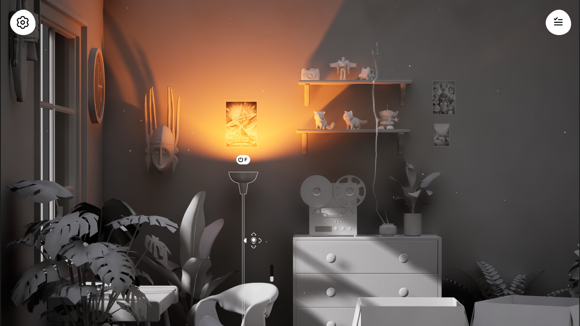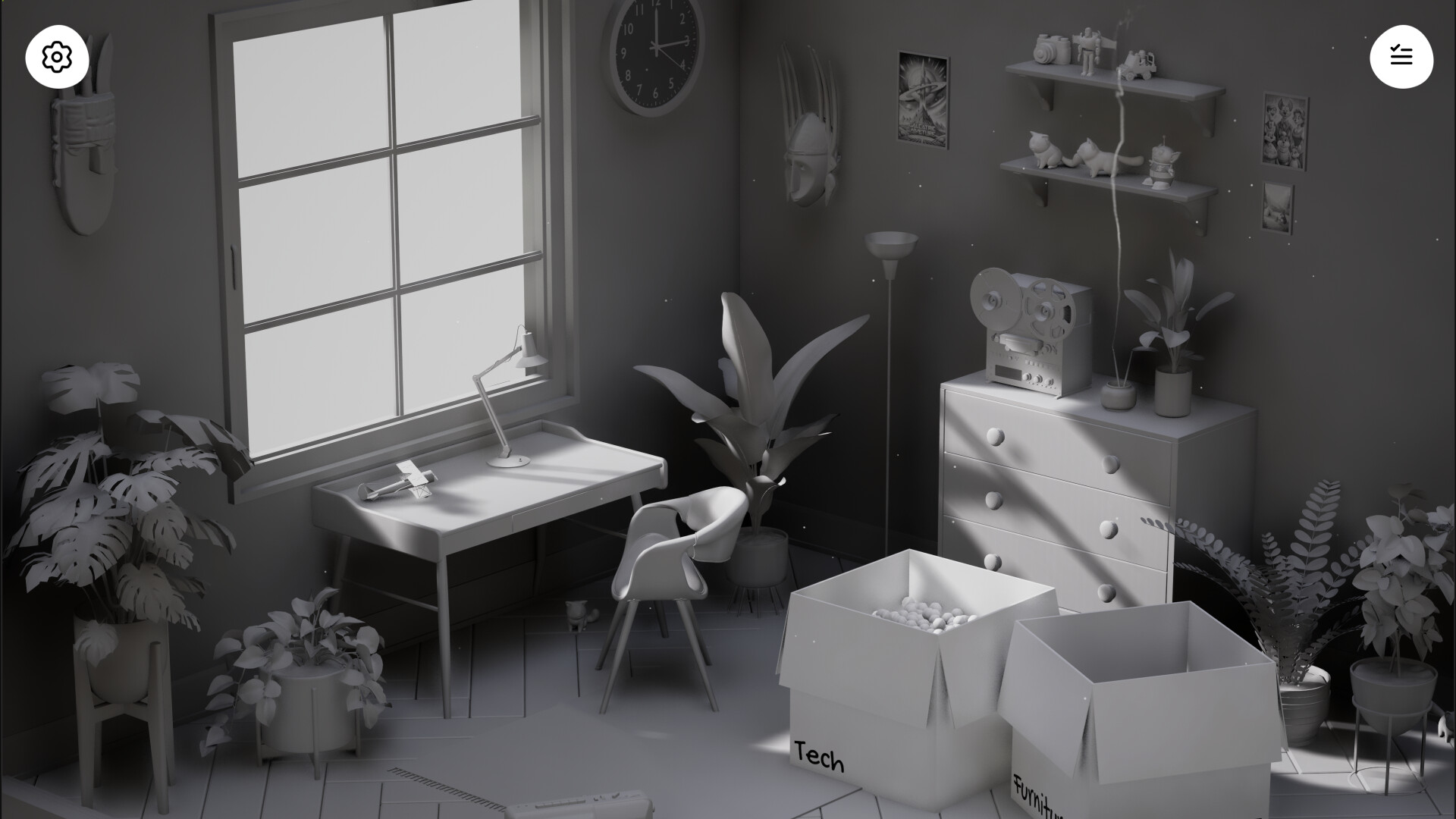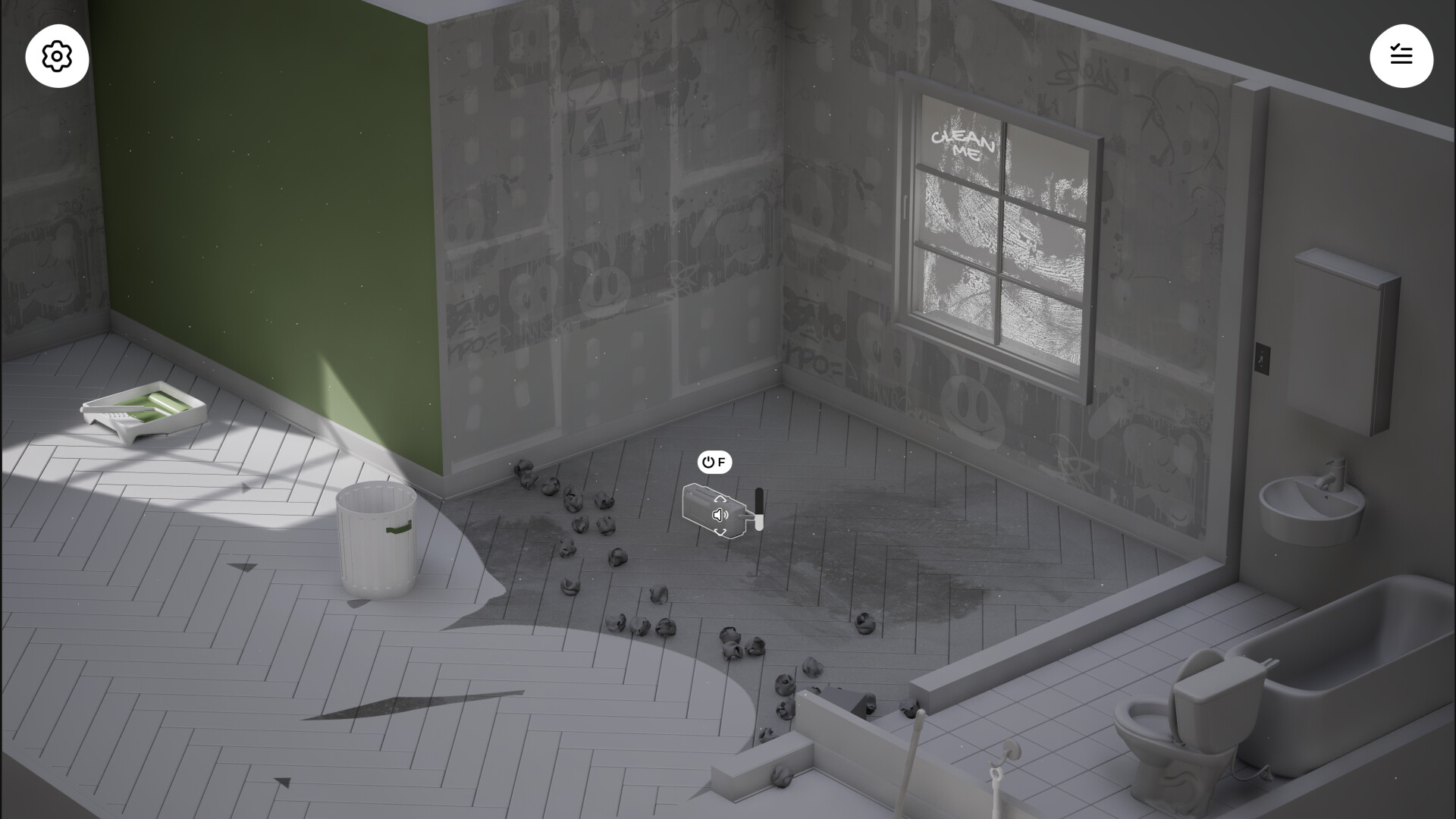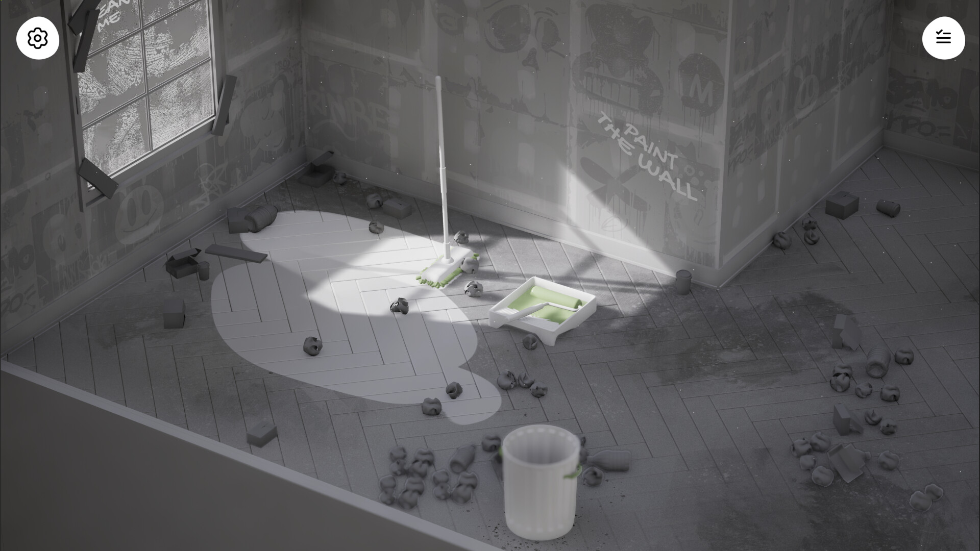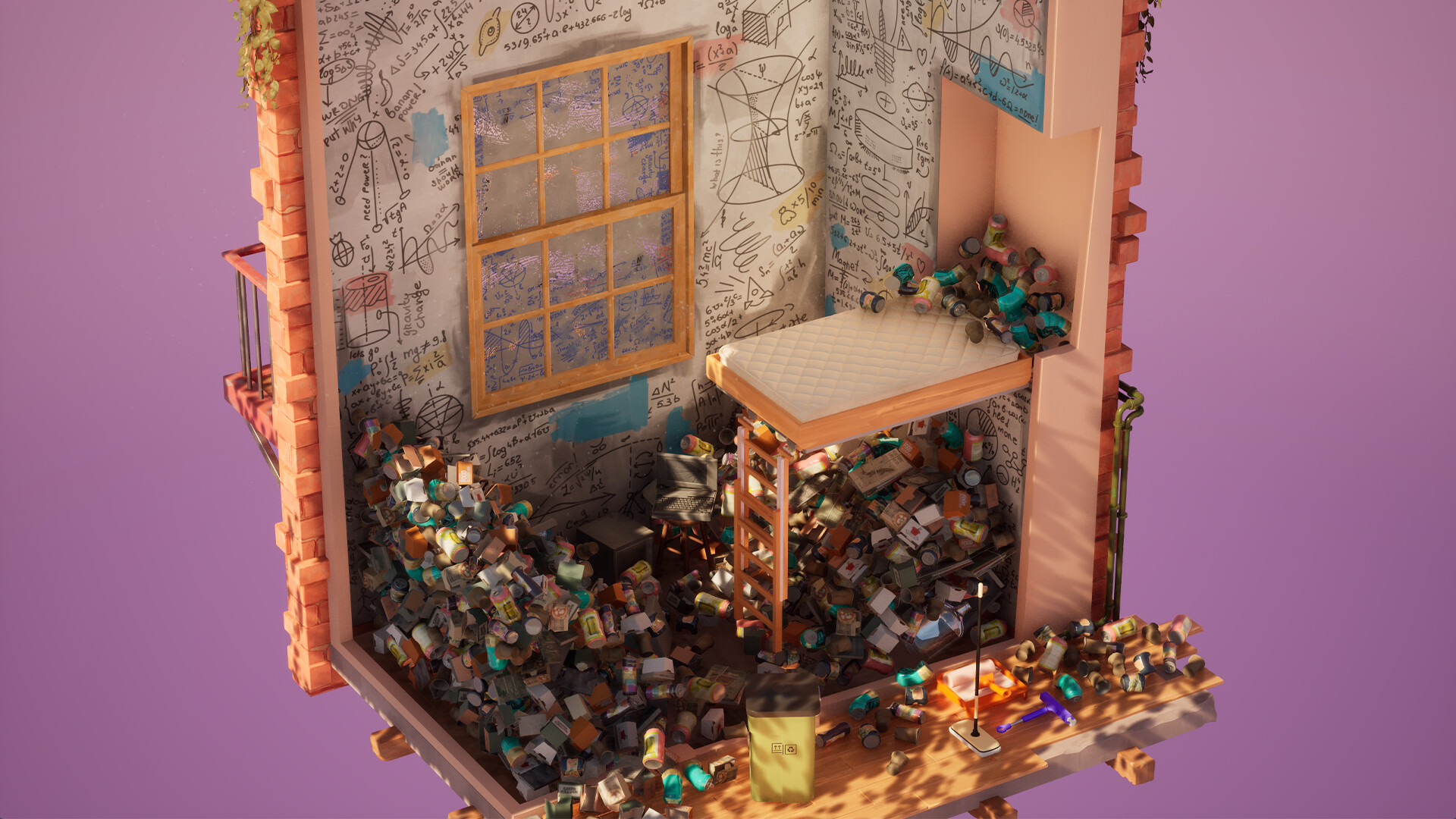Immerse yourself in the cozy atmosphere. Every small action delivers a micro-dopamine hit and a tiny “aha!” moment. Plants sway, music players can be turned on, and trash realistically tumbles in and out of the bin. Open the window to hear the natural sounds louder and invite the wind to play with dust particles.