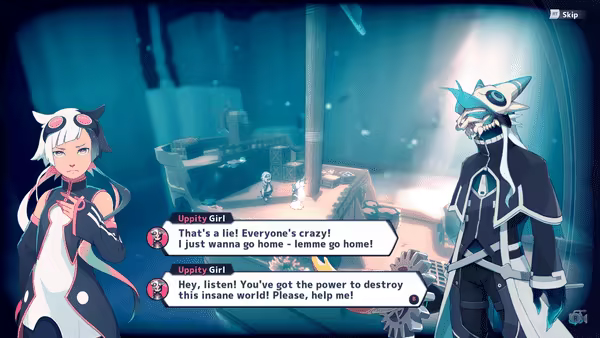 A young girl who claims that the main character possesses “the power to destroy the world”. She seems to be somehow quite unhappy with this world...