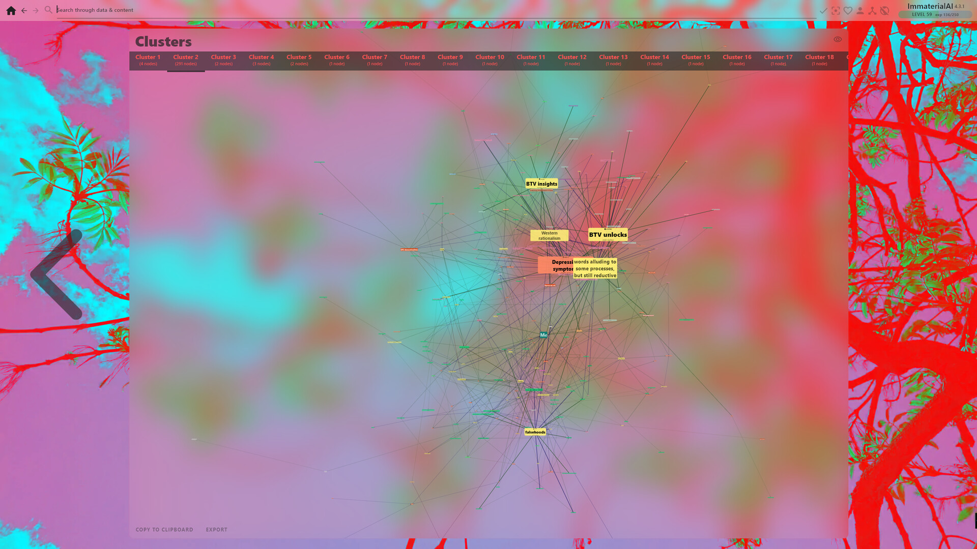 - Clusters: calculate how your data is clustered based on all your nodes and relations + view clusters as graphs and easily export them