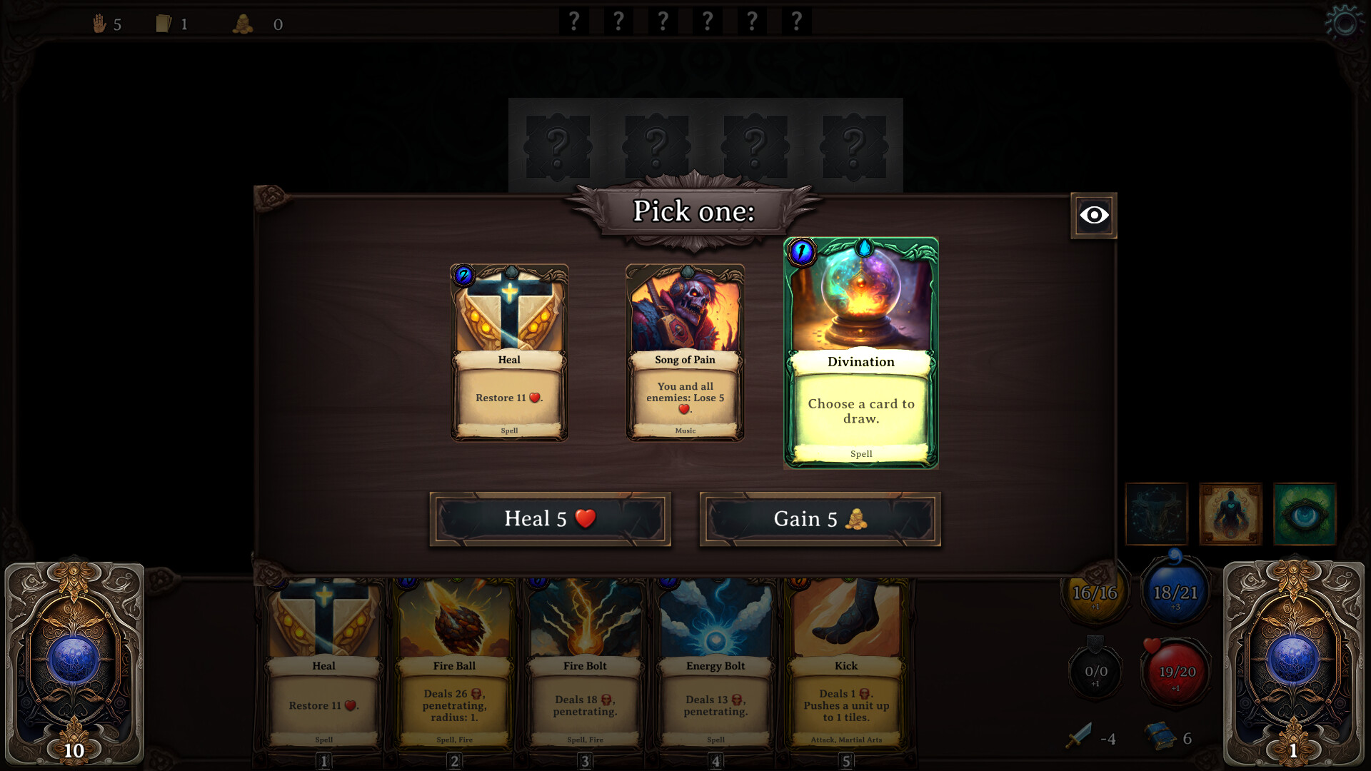 Every run will give you new cards and items to modify your deck and stats / buffs during gameplay!