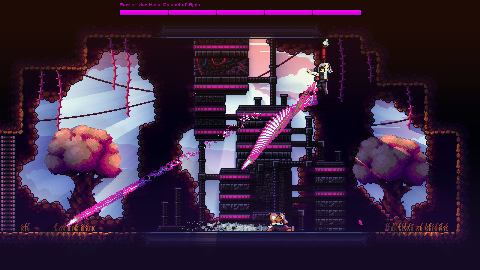 Why... Continue?Instinct is a die & retry game with organic 2D pixel art where speedrun-oriented mechanics such as dashing, sliding, and parrying blend seamlessly between combat and platforming.