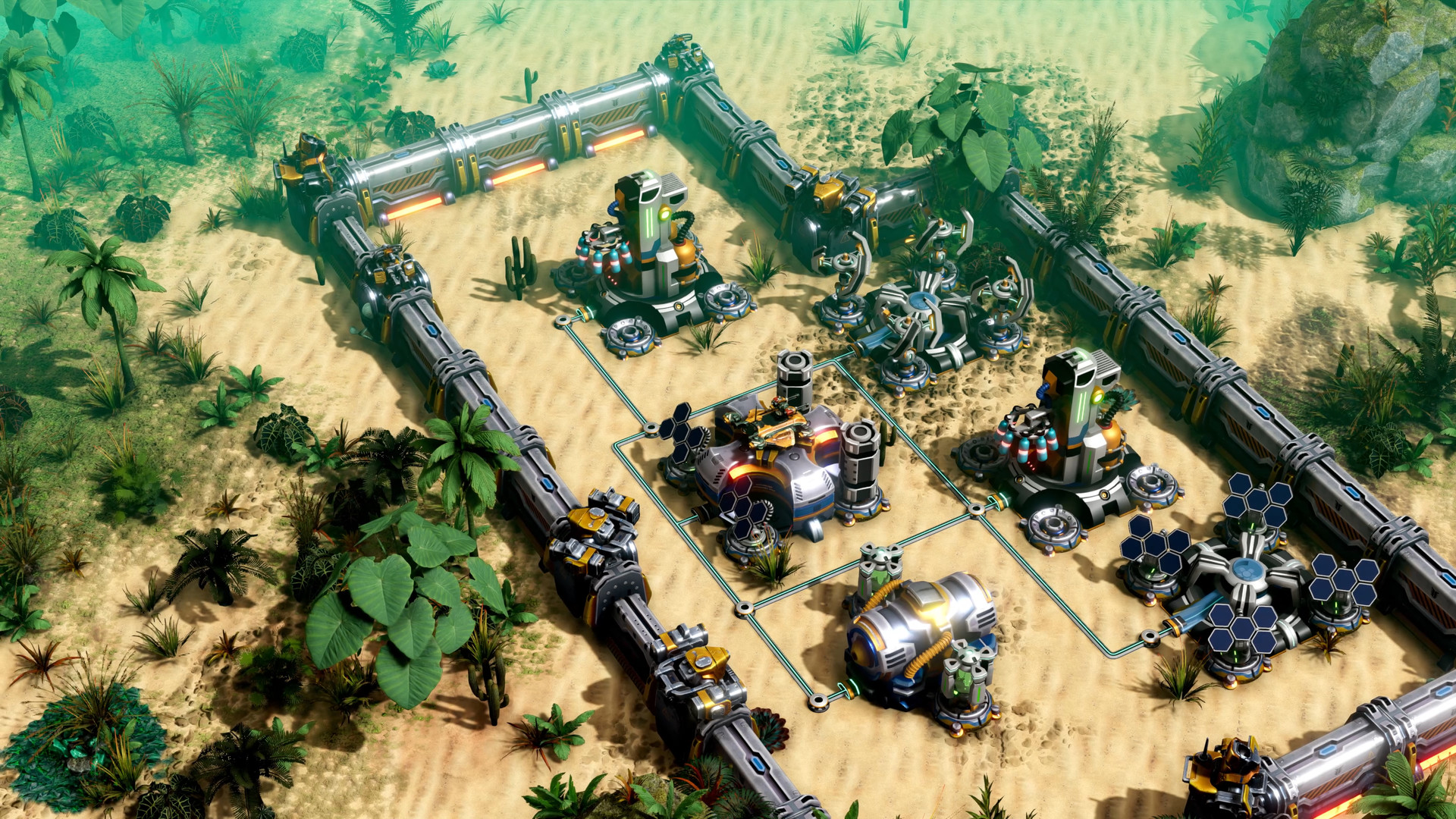 Fortunately, you possess advanced knowledge of human civilization. Gather resources of a different kind that are known to you and research the ones humans have never encountered before. Construct outposts and power them with electricity. Automate your resource gathering and protect it by building up your defenses.