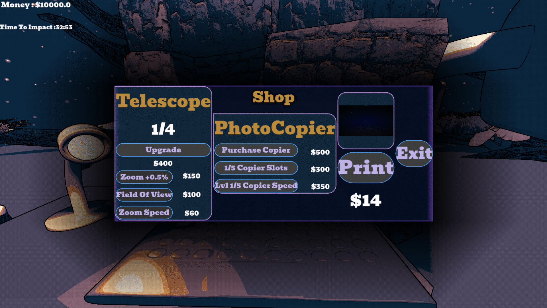 Sell your photos, slowly improve your observatory, and expand what you can reach with your telescope. Not for power, not for glory, but because you need to understand what’s out there… and whether you have time left to escape.