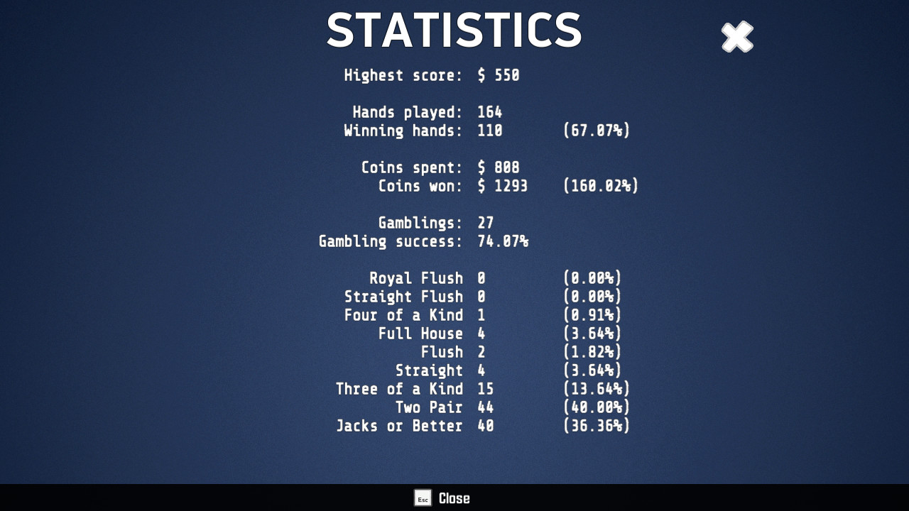All the basic rules of poker are adhered here and the maximum win is 4000 coins for Royal Flush.