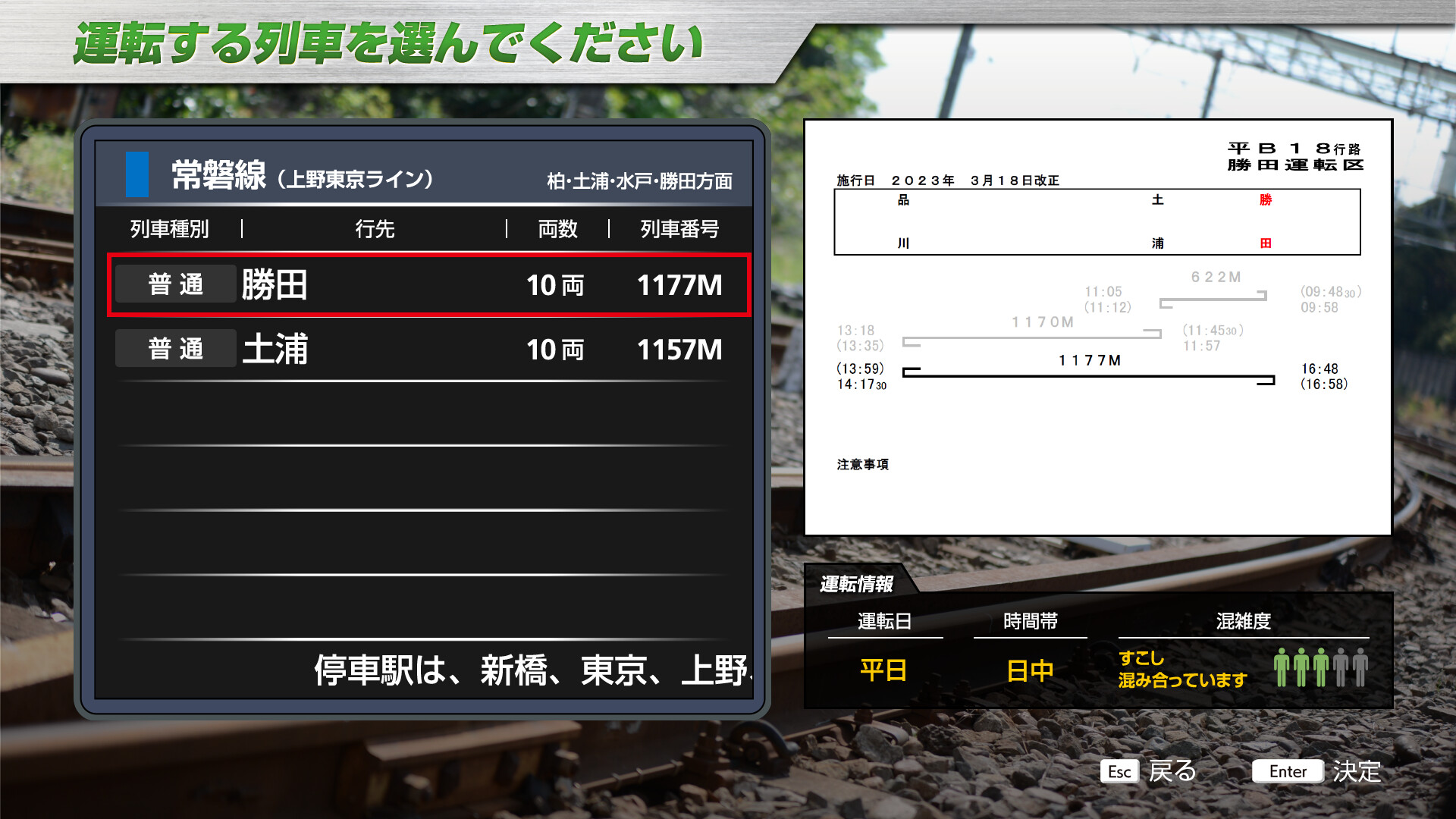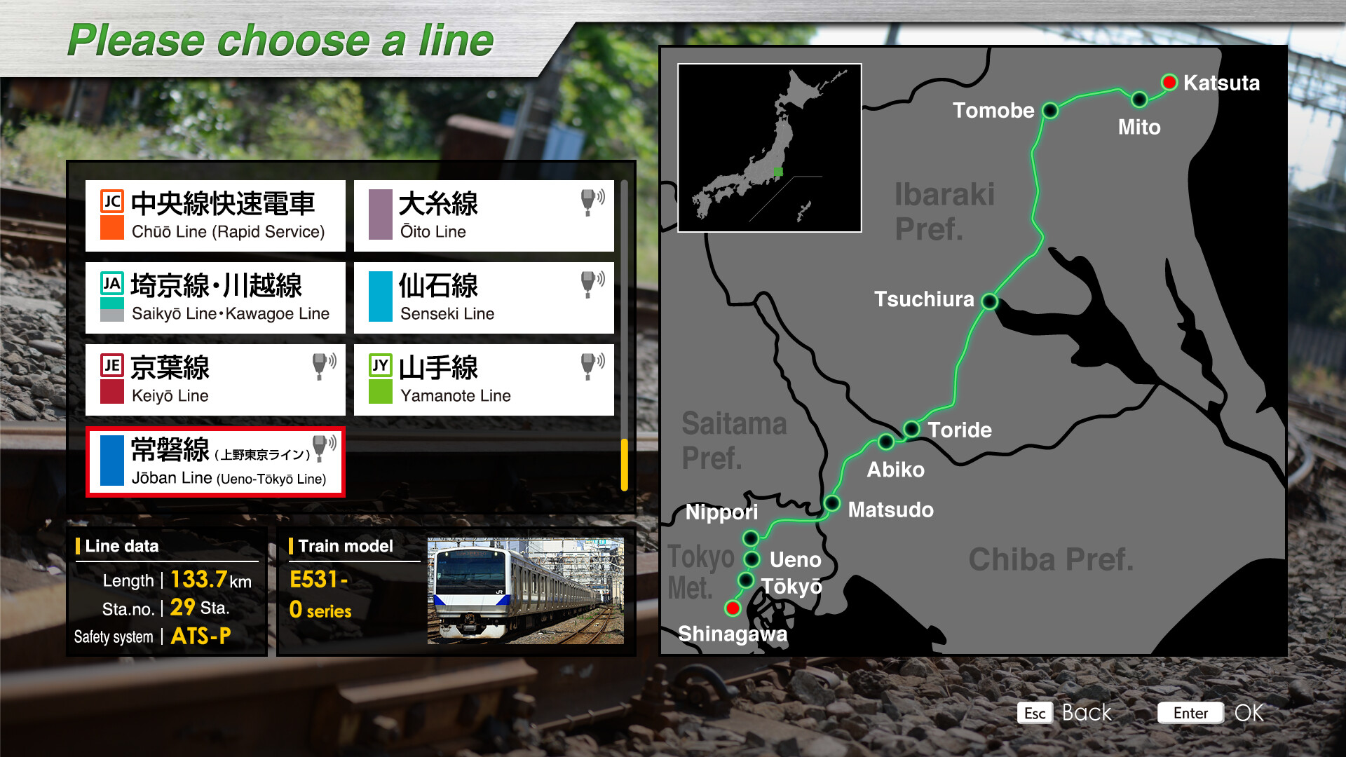 This DLC includes the Ueno Tokyo Line between Shinagawa Station and Ueno Station and the Joban Line between Ueno Station and Katsuta Station.