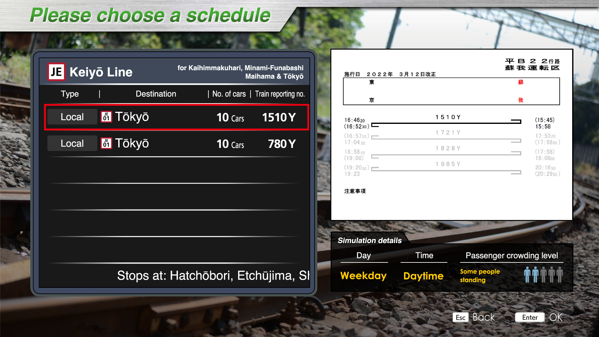 - Type/Destination: Local train bound for Tokyo