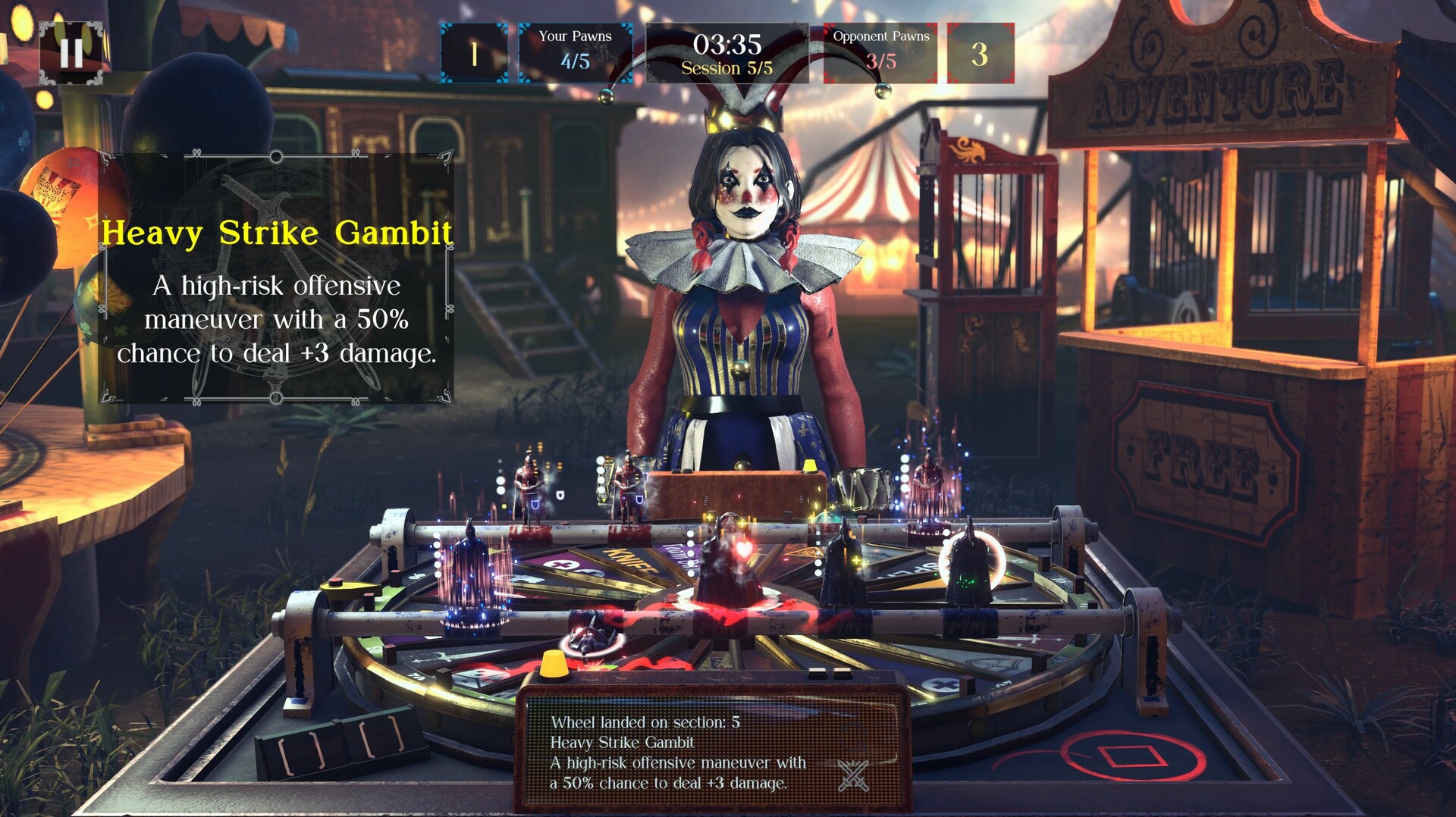 Win 3 out of 5 sessions to emerge victorious! But remember! If all your pawns die, you lose completely.