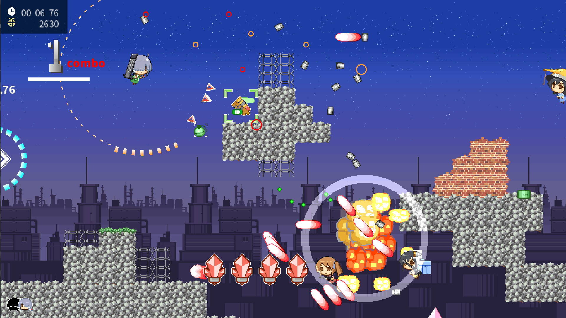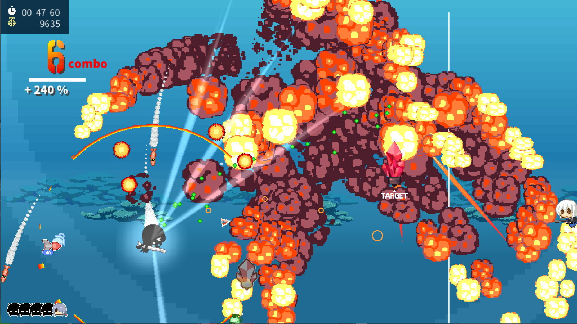 A brand new kind of shump where you use weapons and kamikaze attacks to quickly clear stages taking down as many enemies with you as possible.
