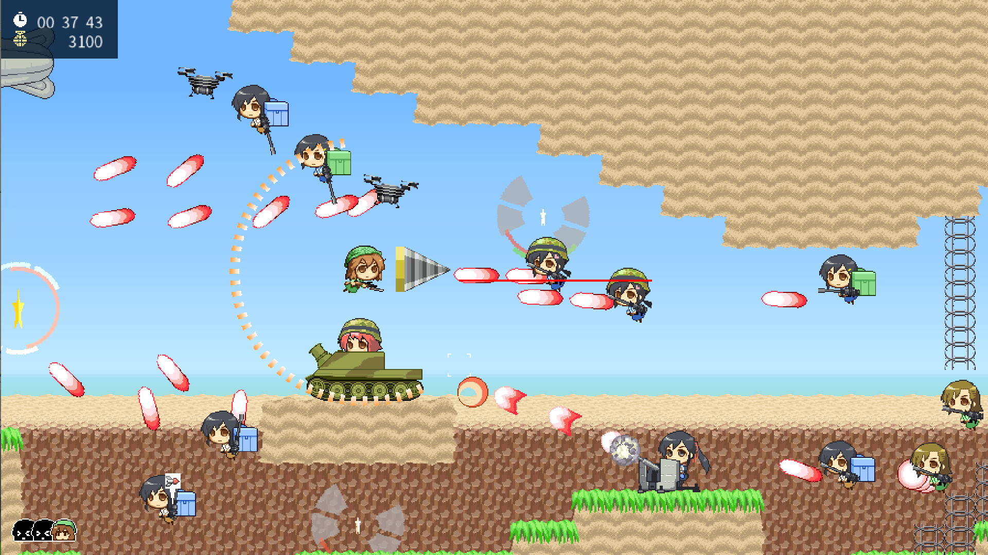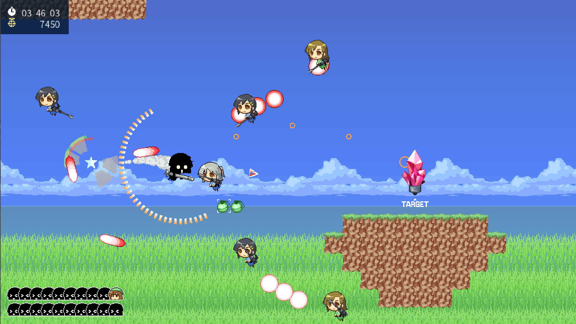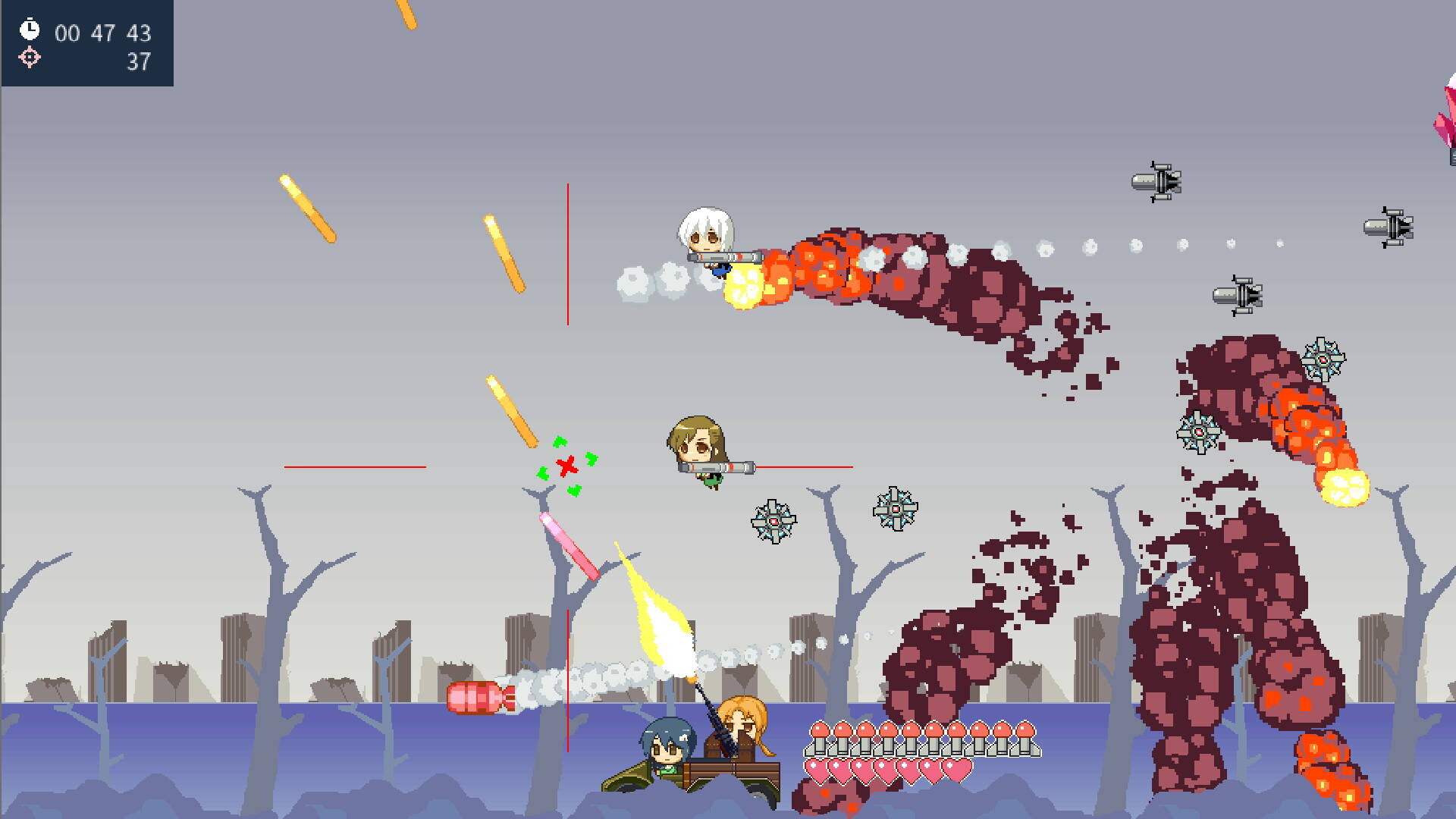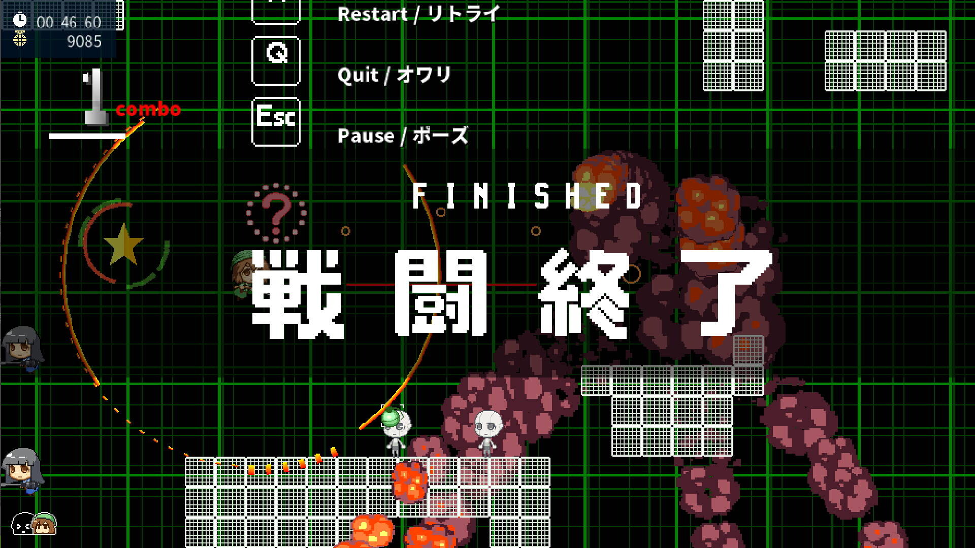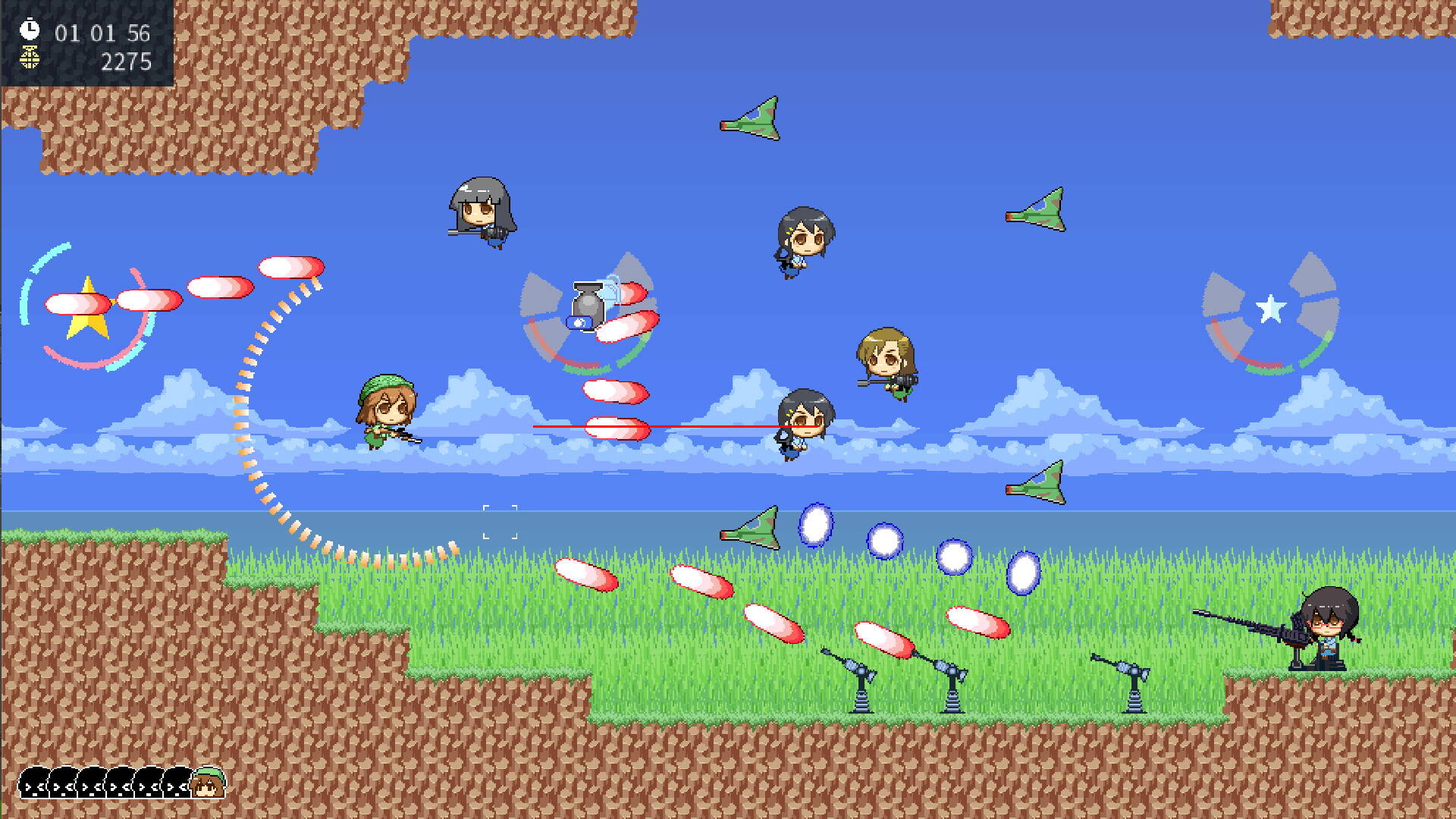 The first of its kind in human history. A self destructive shmup where own plows forward recklessly while destroying everyone and everything along the way. Squadron, charge!!