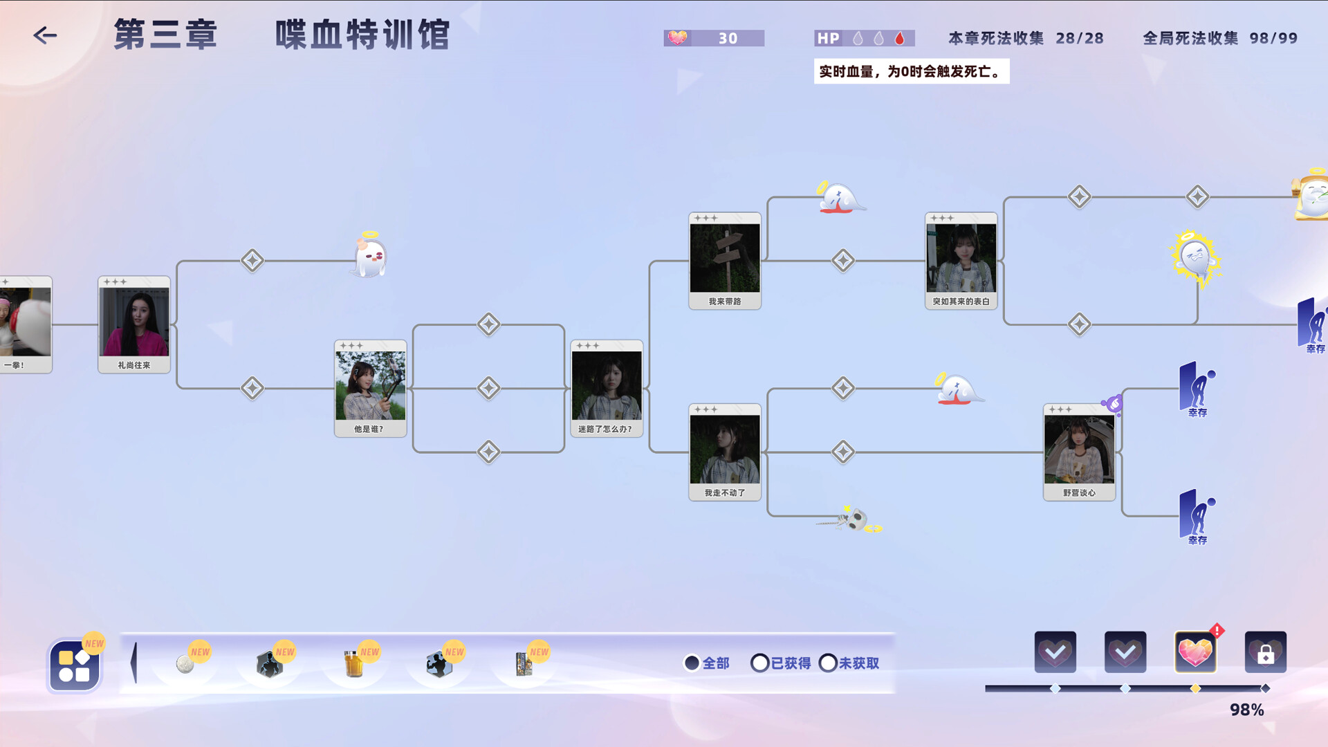 4)除第一人称互动影游常见的道具系统、好感度系统外,还创新性地加入主角的血量系统,引入RPG特色玩法(所以请随时注意剩余血量)。