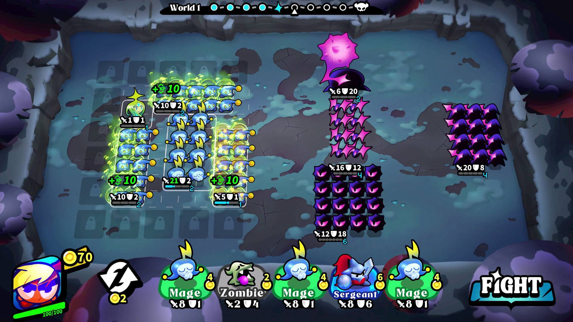 Enroll units of all shapes and sizes! It's up to you to make them work together! Place and rotate them to use their specific talents to the fullest. Will you lead an army of undead or put your trust in the magician's guild?