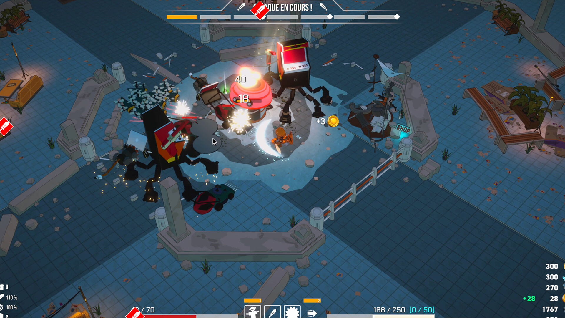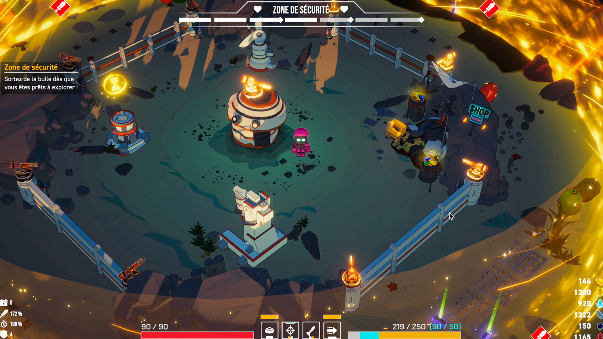 This is also your little coffee break: you can upgrade and reinforce defenses, as well as chat with a merchant ready to "exchange his creator for a few coins." He sells upgrades, notably... interesting!