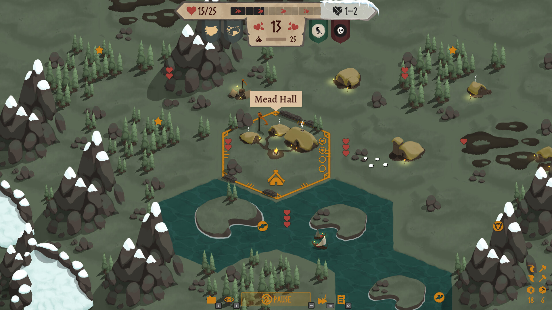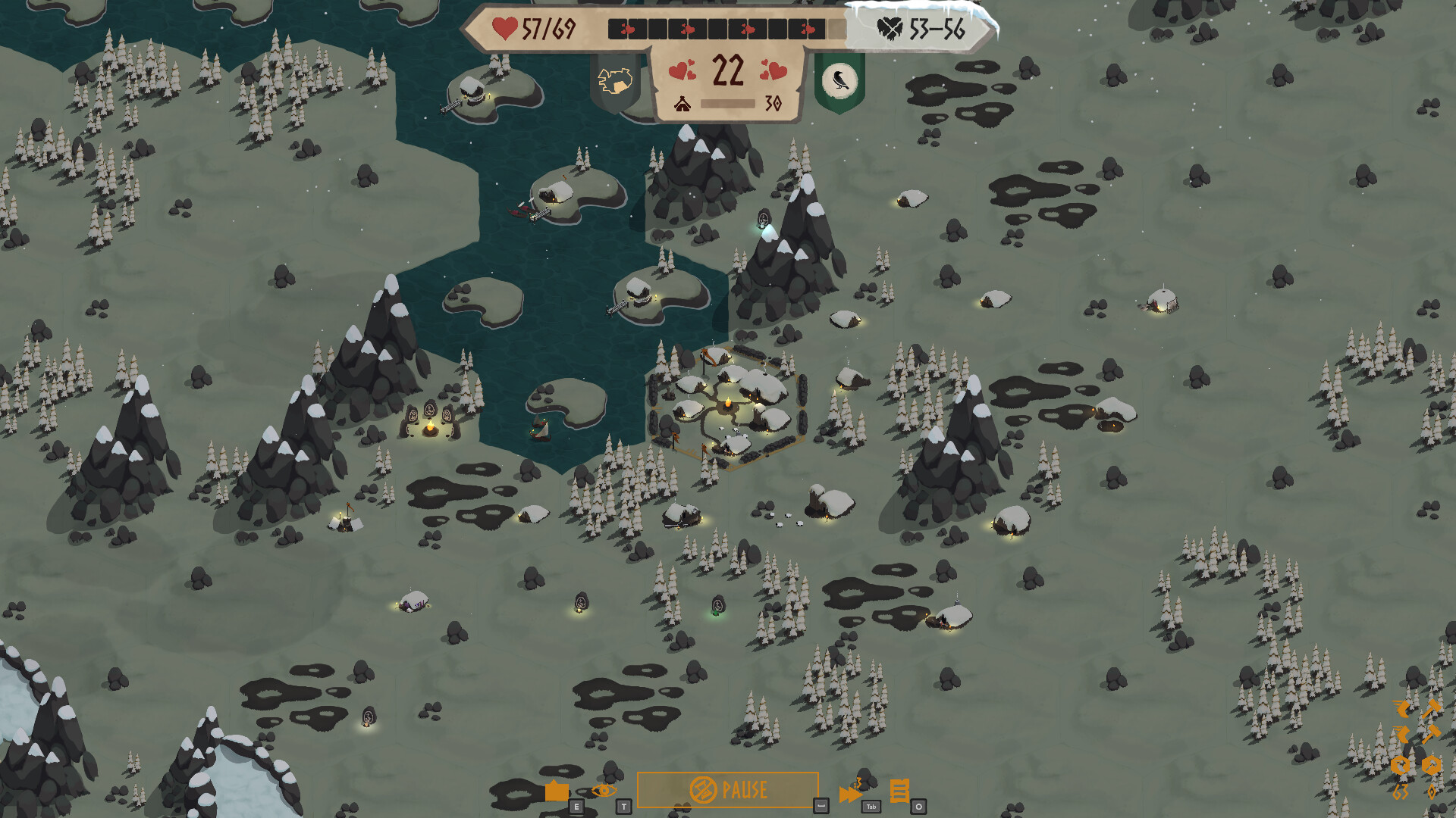 Landnama is a taxing race against time with an ever present ticking clock pushing you always closer to winter, but it’s also a beautiful world where you can freeze time and enjoy the atmospheric music and art. Explore in detail the settlement you’ve built and the animated denizens that populate it.