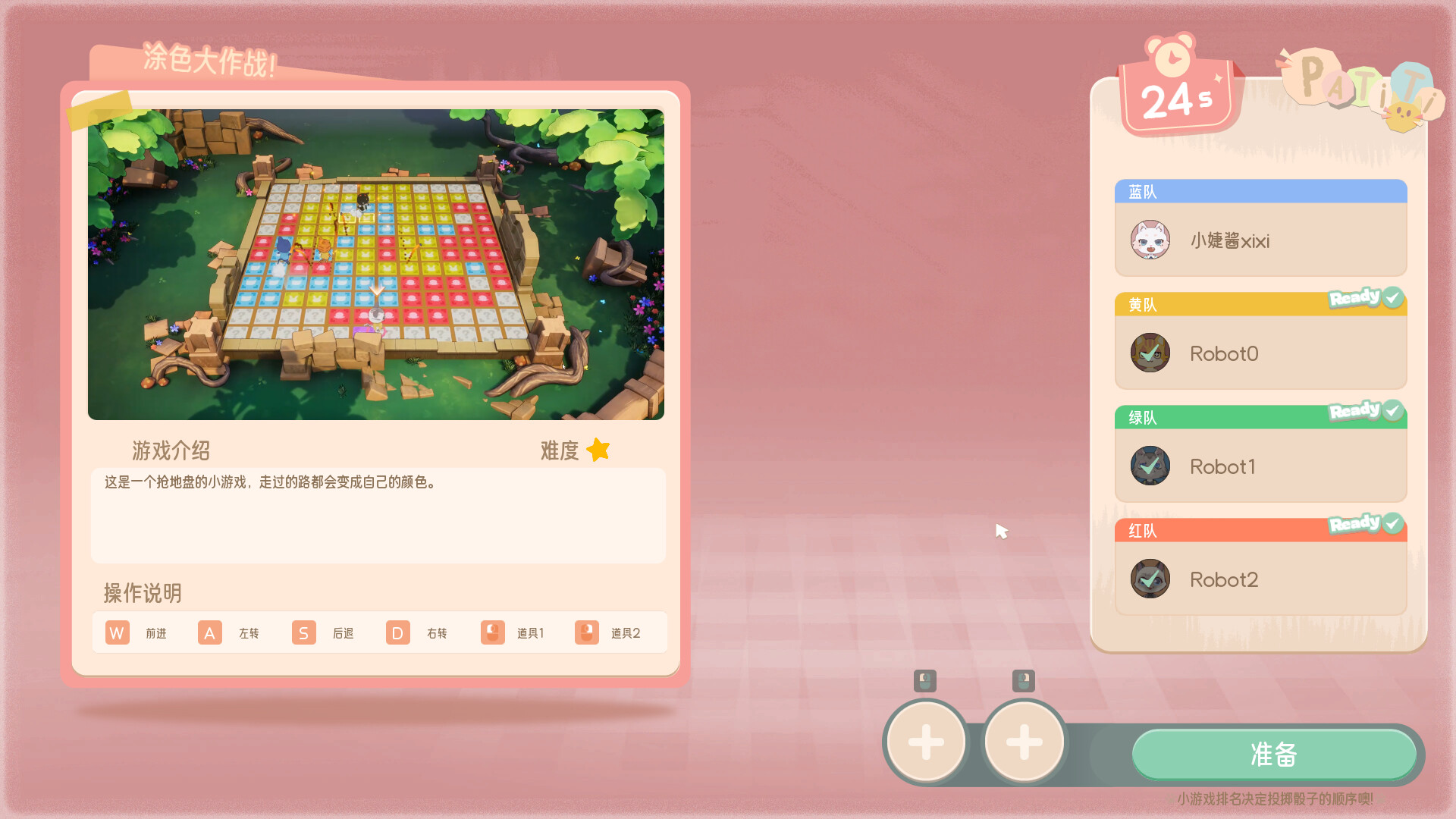 "Let's Patiti!" is a multiplayer party game that supports 2-4 players and can be played online or locally. In the game, you take on the role of an adorable little cat, engaging in a game of chase and cunning competition with your "Meow Meow" friends or AI in the "Meow Meow Forest".