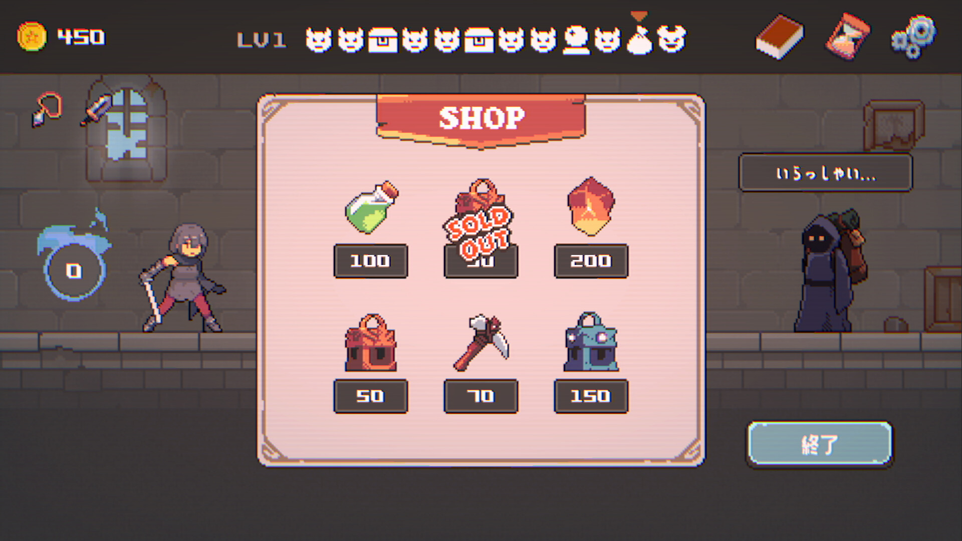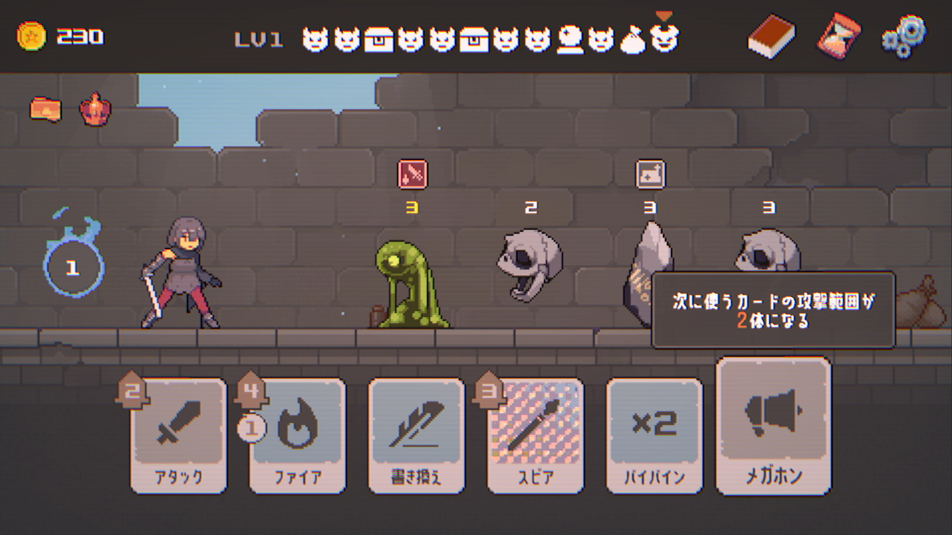 Upgrade your deck using the money you earn! Defeat stronger enemies to earn more money! Repeat this process until you clear the dungeon!
