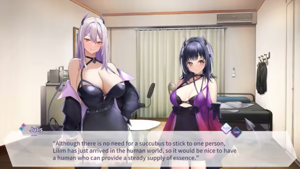 This is a relaxing, daily life-style simulation game. Go to work to earn money, go on dates on the weekends, and interact with Lilim using a limited amount of daily action points. You need to keep an eye on Lilim's [Satiety Level], feed her before she gets hungry and accumulate semen to raise her [Succubus Level], and raise her [Affection Level] and [Slut Level] through interactions. Lilim will react differently according to the values of these levels, which will also affect which ending you get.
