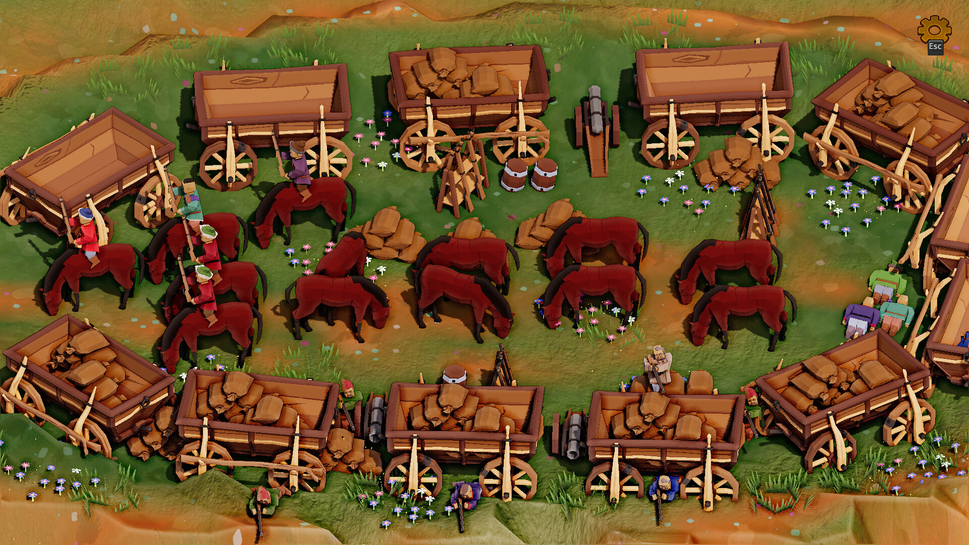 The game is heavily inspired by the classic crafting and city-building games from the early 2000s. You have to build new productions, barns, farms, manufacturings. The goods produced by simple productions are used in more complex ones.
