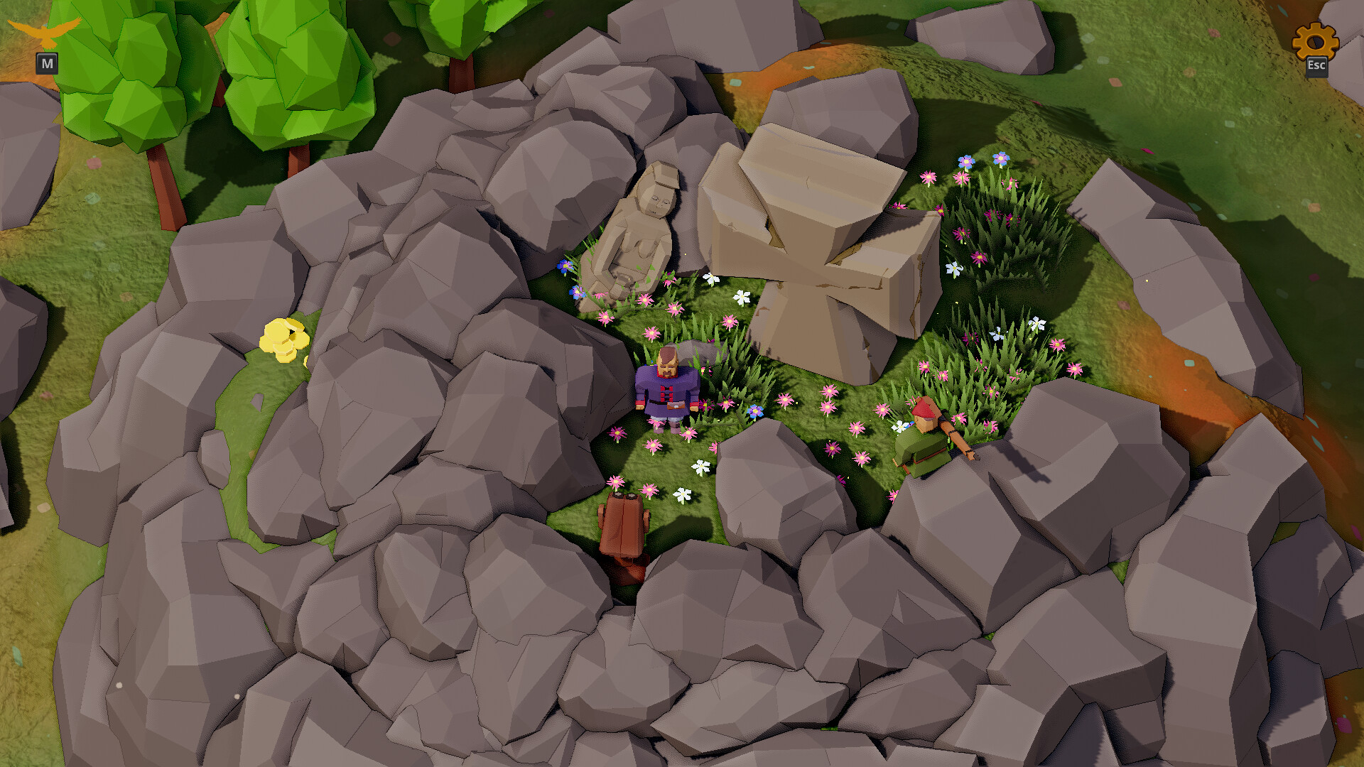 The treasures you find have to be brought to the central hill and placed in the correct slot. Don't worry, there is a treasure hunter sitting nearby. He will tell you everything he knows about storing treasures!