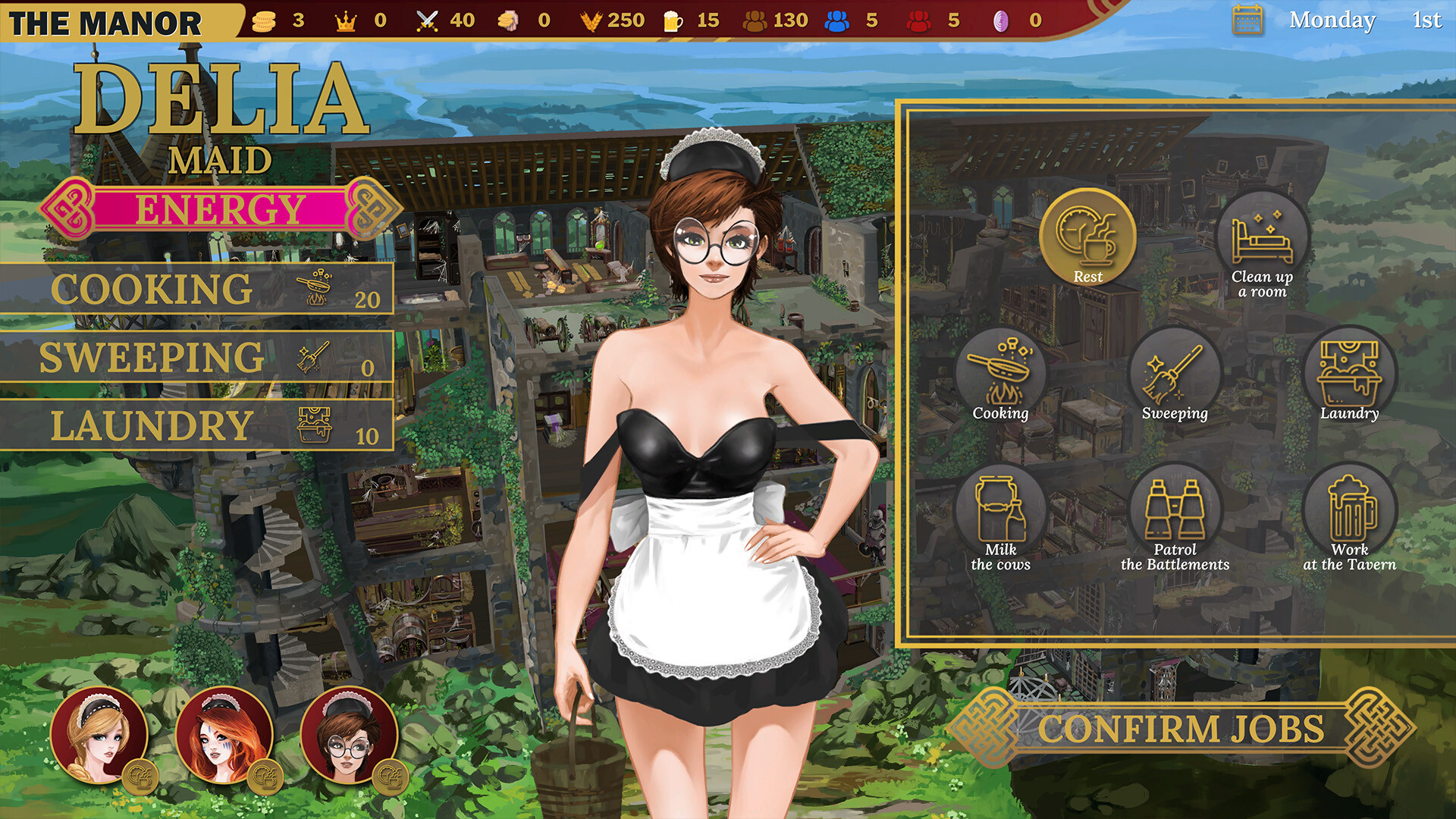 Visual novel meets management sim- thanks to a spell gone wrong, you, a lowly goblin, become the lord of a realm. You’ll need to govern your lands, renovate your manor, and most importantly- train up your naïve maids into a team of skilled servants!