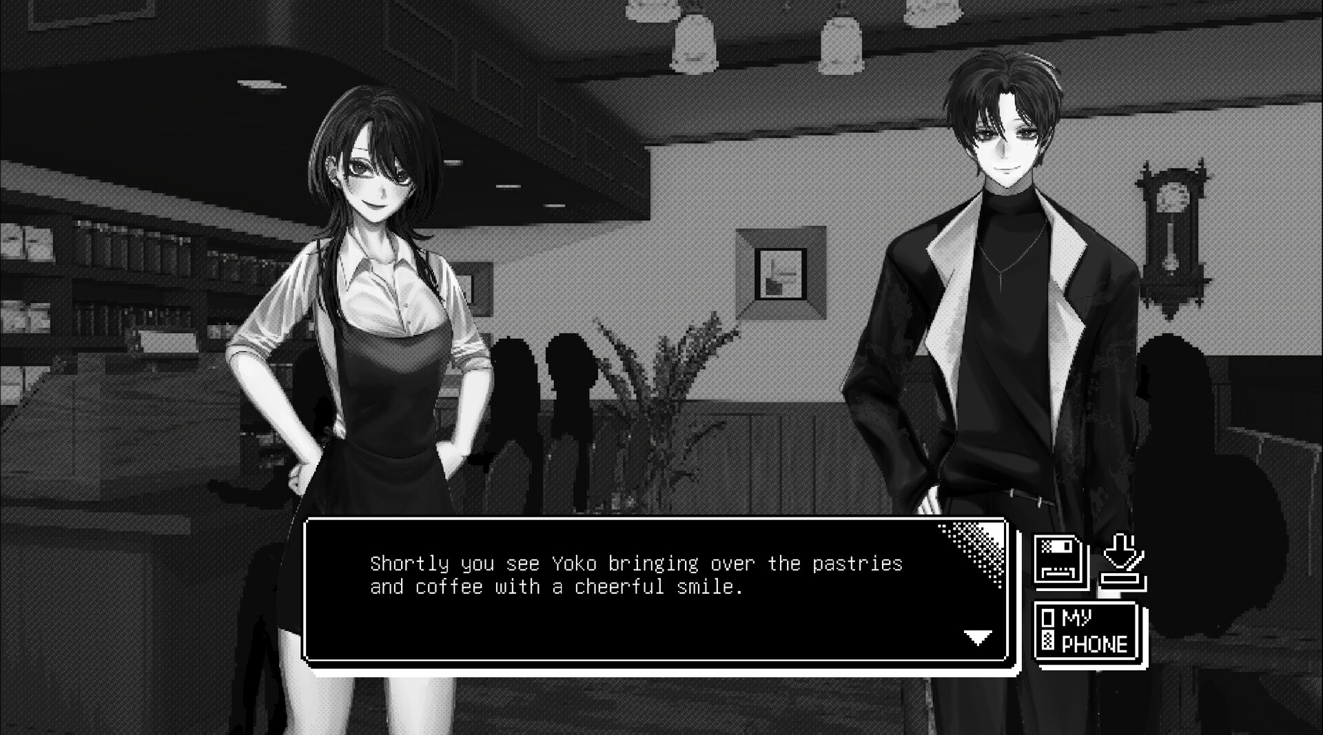 Trying to solve mysteries can be tiring. To relax, you often turn to your phone for games in order to keep calm. Successfully completing these increases your sanity, allowing you to get through another day. There are multiple difficulties, with each harder difficulty you successfully complete, the more your sanity stays.