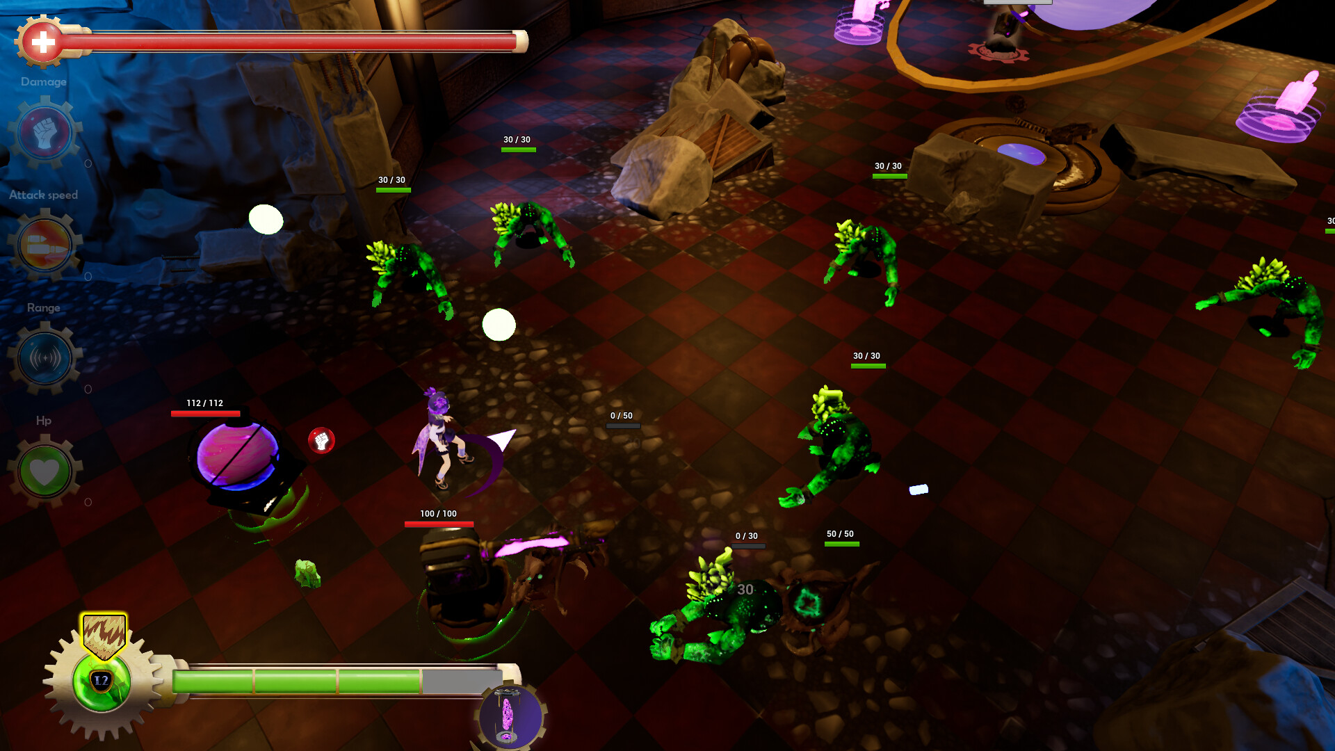 Upgrade your turrets: Increase the damage and power of your turrets by taking advantage of the plates and objects on the stage.