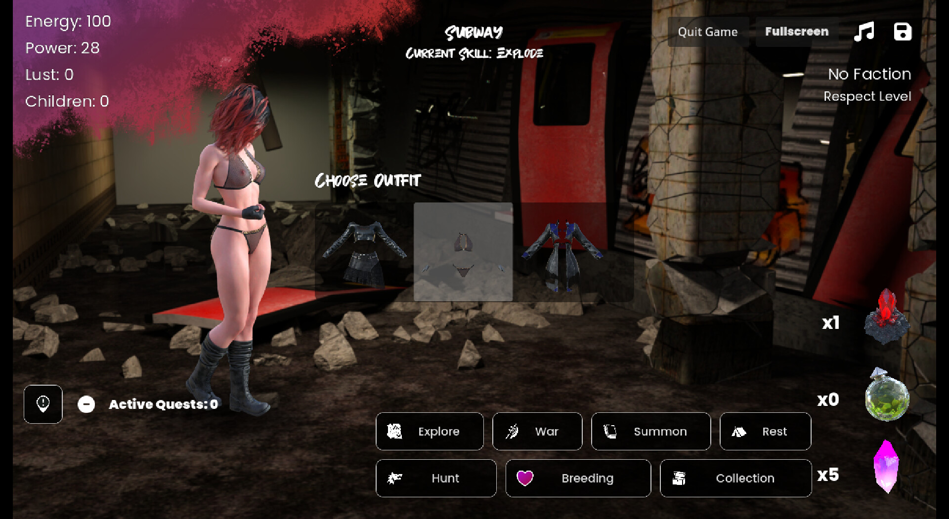 In this current build, you can explore the subway in 'Explore Mode'. Collect Crystals and Fight Wolves, even join the Orge Faction!