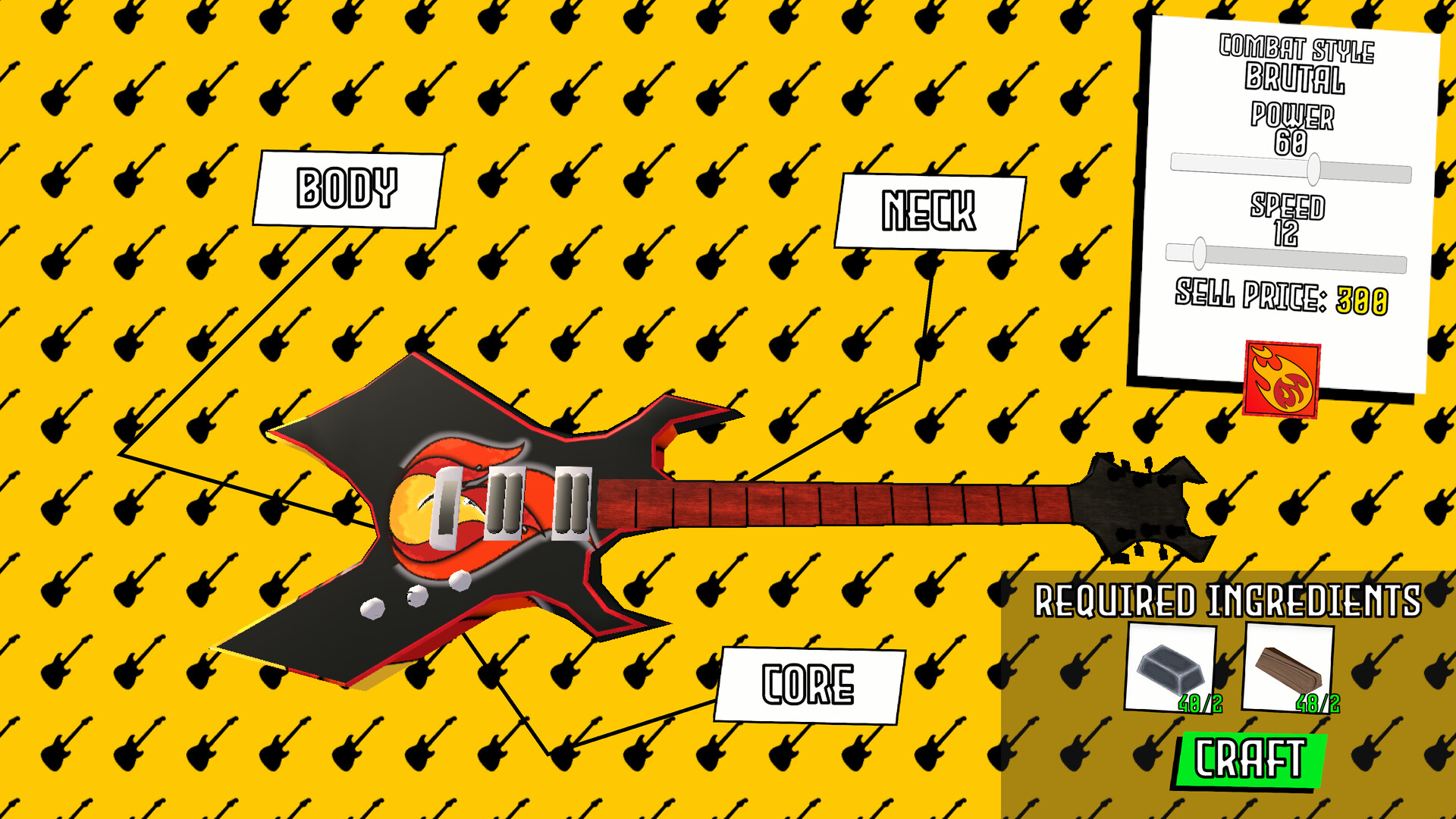 As the owner of a guitar store, you'll not only forge and sell guitars but also upgrade your shop and character. Manage your shop, set prices, and attract customers to earn money. Use your earnings to enhance your abilities, making you a ultimate guitar hero.