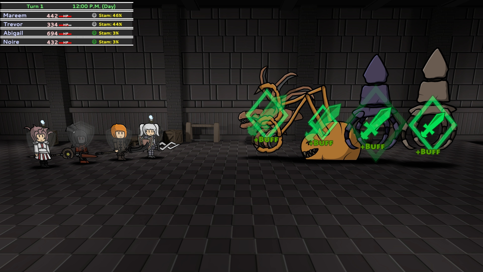 For resources, Majula Frontier uses stamina. Stamina starts at 0, and whenever a character uses a skill or is hit by an enemy skill, their stamina increases. As their stamina reaches certain thresholds, their damage decreases, the damage they receive increases, and their chance of resisting a fatal hit decreases. There are very few ways to recover stamina during a mission, so in order to survive it’s critical that you optimize your skill usage.