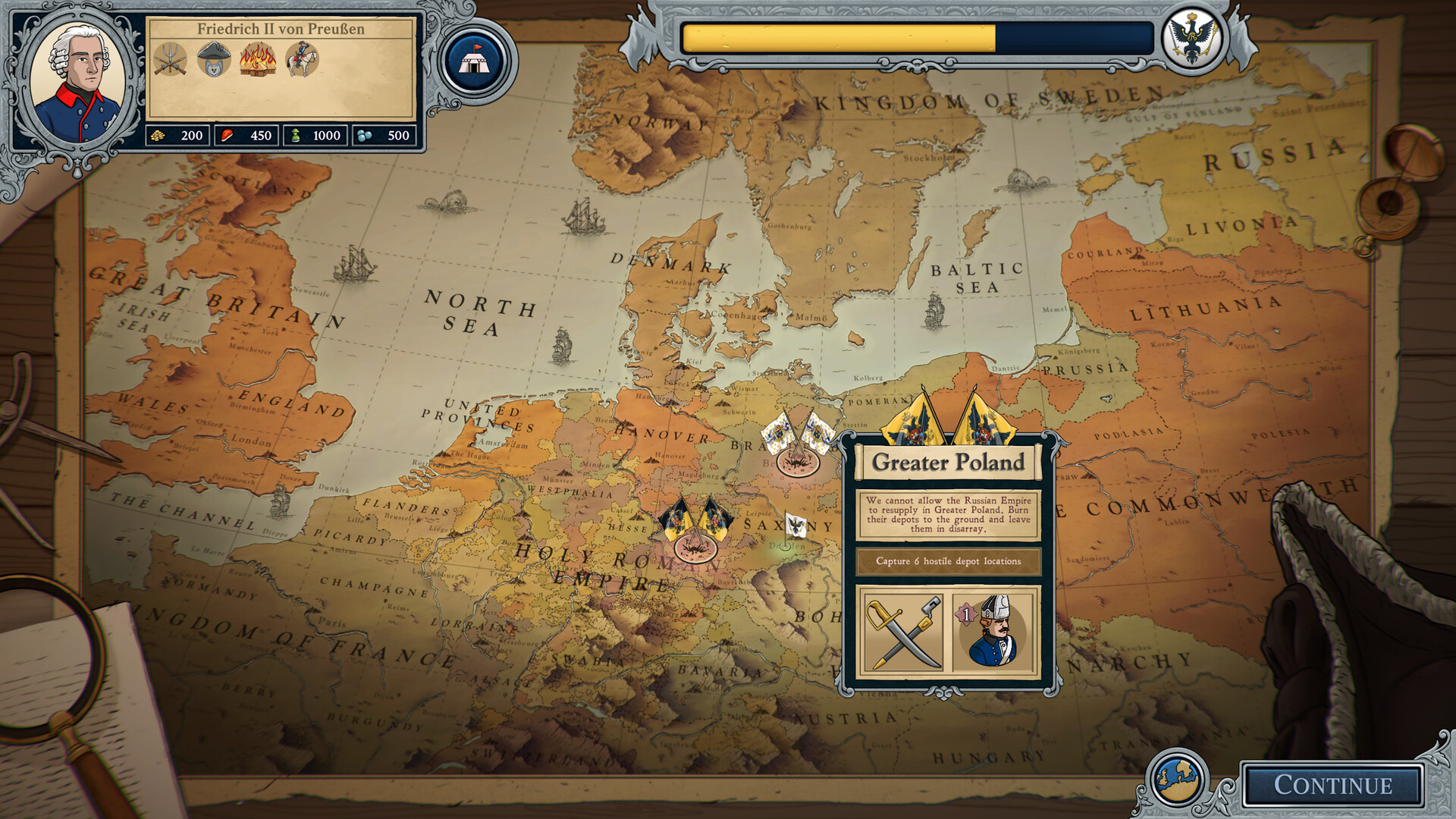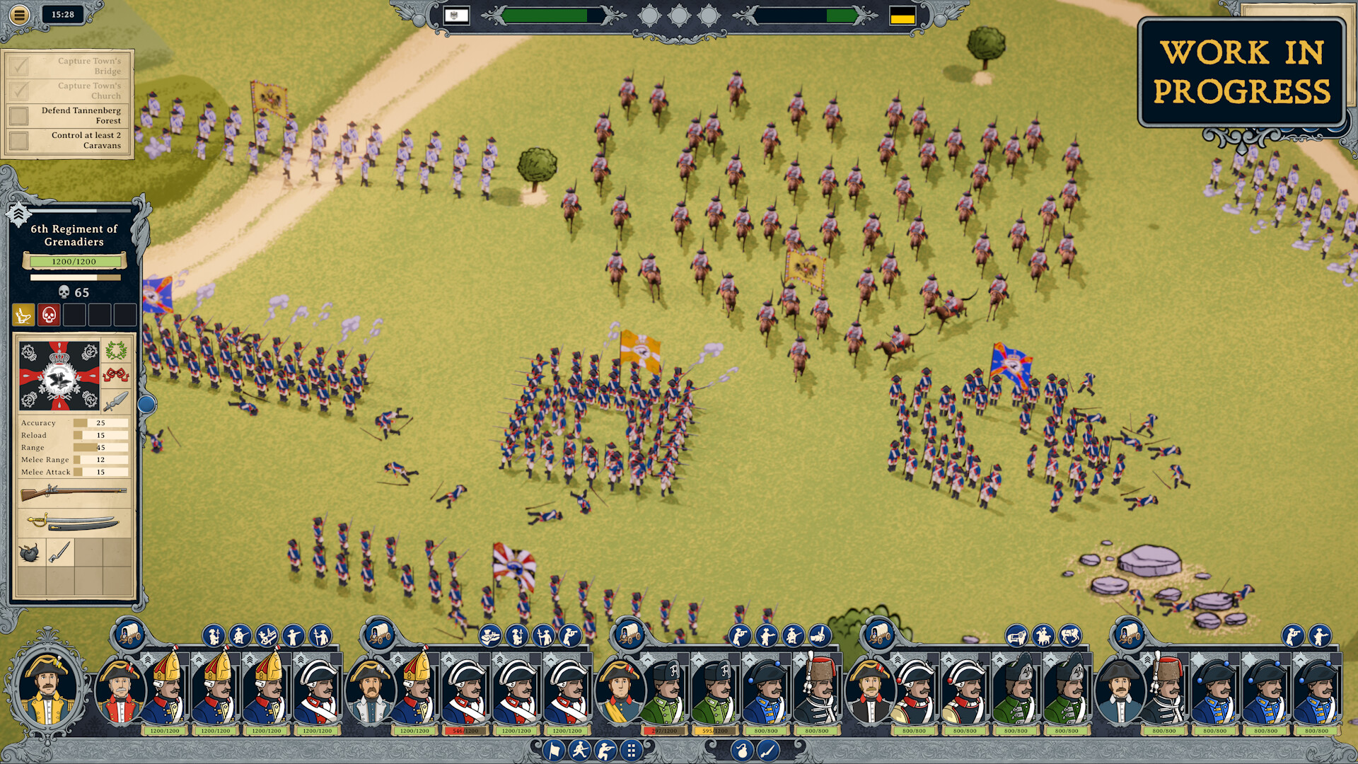 Master of Command is a real-time tactical strategy game set during the Seven Years' War. You take control of an army, manage its supplies, engage enemy forces, and shape your campaign through difficult choices and decisive battles. Every encounter, every piece of equipment, and every soldier lost matters.