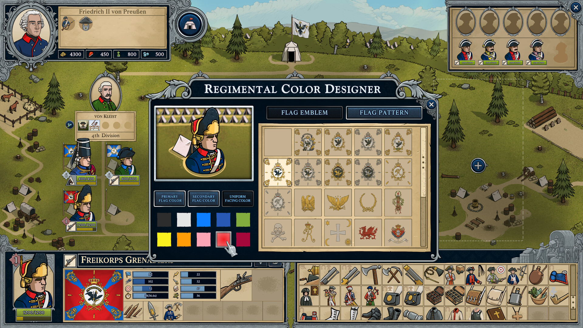 Regiments aren’t expendable; they are comprised of a living group of men relying on what you’ve given them. Outfit your line infantry with rifles for long-range precision, cylindrical ramrods for faster reloads, or field musicians to steady their morale under fire. Customize their flags and uniforms to reflect your unit's identity or design something entirely unique. Supplies wear down, resources are limited, and every army ends up looking different by the time the campaign is through.