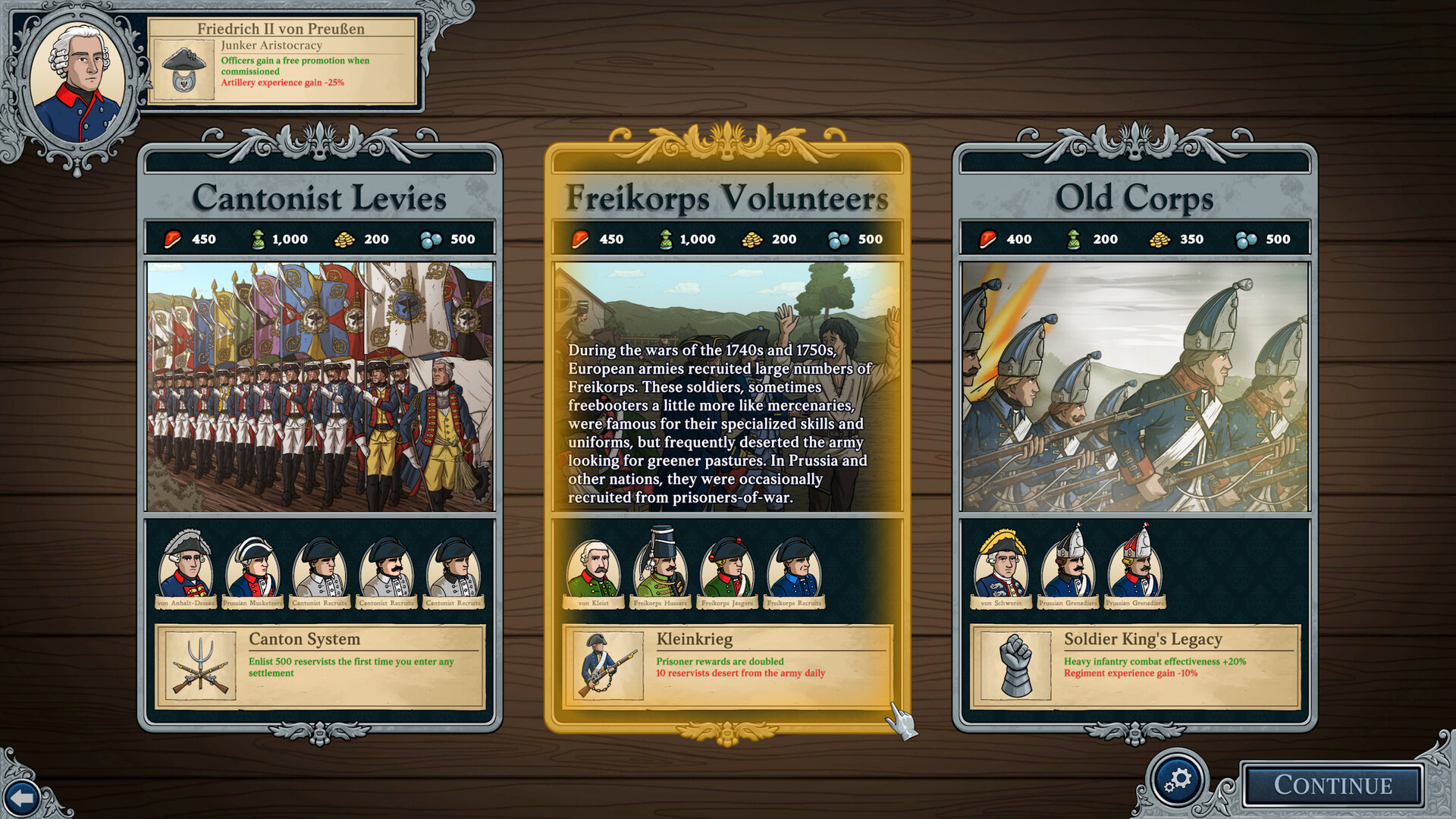 Every army in Master of Command tells a different story. You choose which units to recruit, which officers to promote, and which regiments are worth keeping alive. Some armies are lean and elite, built around veteran grenadiers and cavalry. Others are ragged but massive, relying on sheer numbers and momentum. Officers gain experience over time, and their traits influence how your divisions fight.
