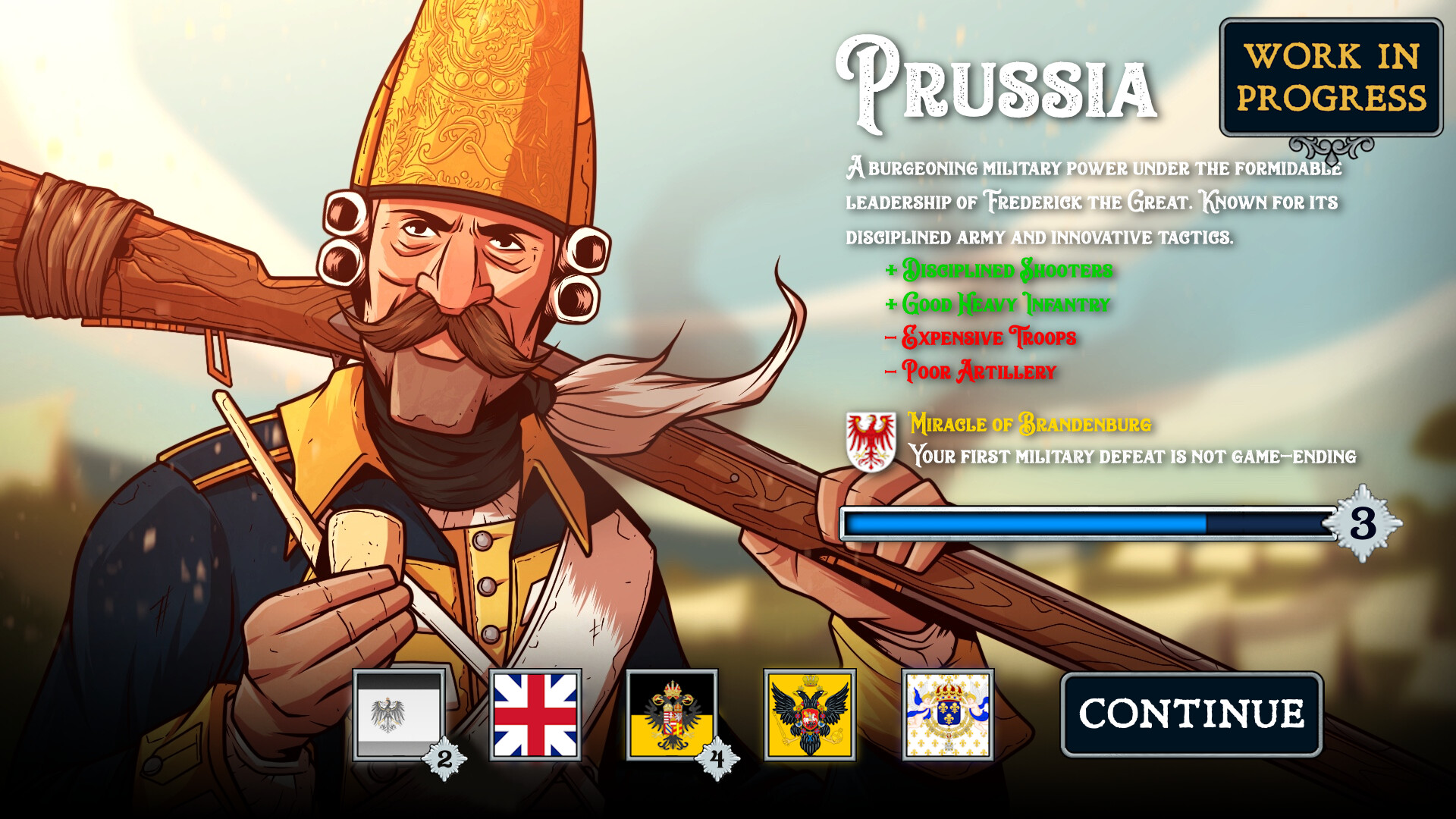 Take command in Europe's greatest 18th-century war. Equip & customize regiments, manage supplies, and engage in brutal real-time battles across procedural campaigns. Resources and replacements are scarce, and keeping your best men alive may matter more than any single victory.