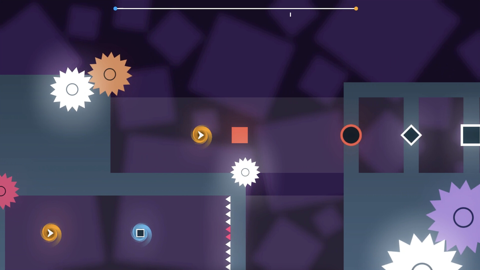 Dive into the "Runner" mode to try out exciting levels crafted by the community with a built-in level editor. Each level may exist in multiple levels of difficulty, depending on the choices of the creator, and offer you some variations on the original design as you progress and master the art of shape-shifting. So from quick and puzzling surprises that keep you on your toes, to calm relaxing experiences, sure you'll always find something to your taste :)