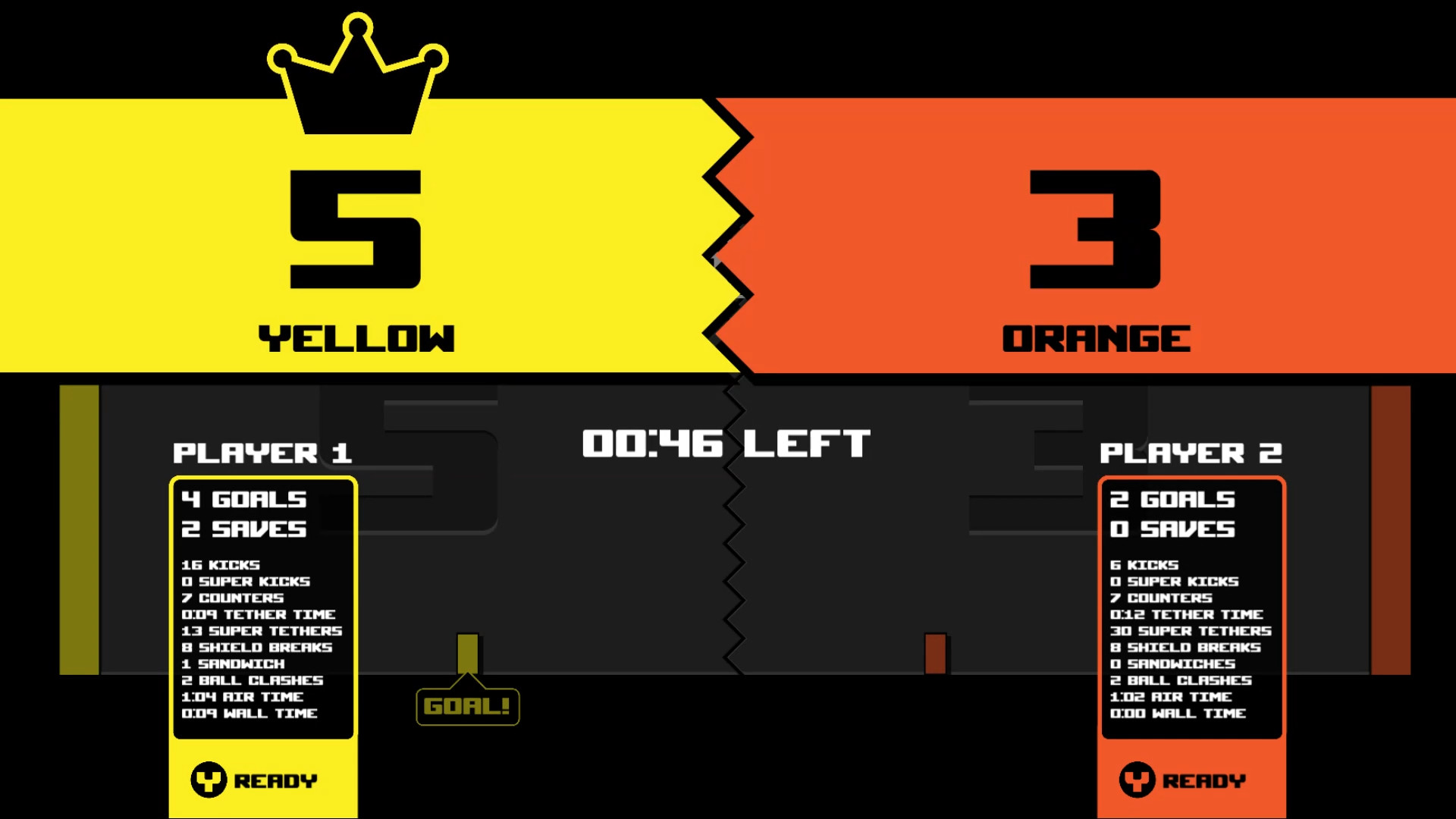 Match Point is a frenetic couch competition game for 2 - 4 contenders. Tether, kick, block, and counter the ball into the opposing team's goal as you hop around in the newfound gravity of this modern take on a familiar arena.