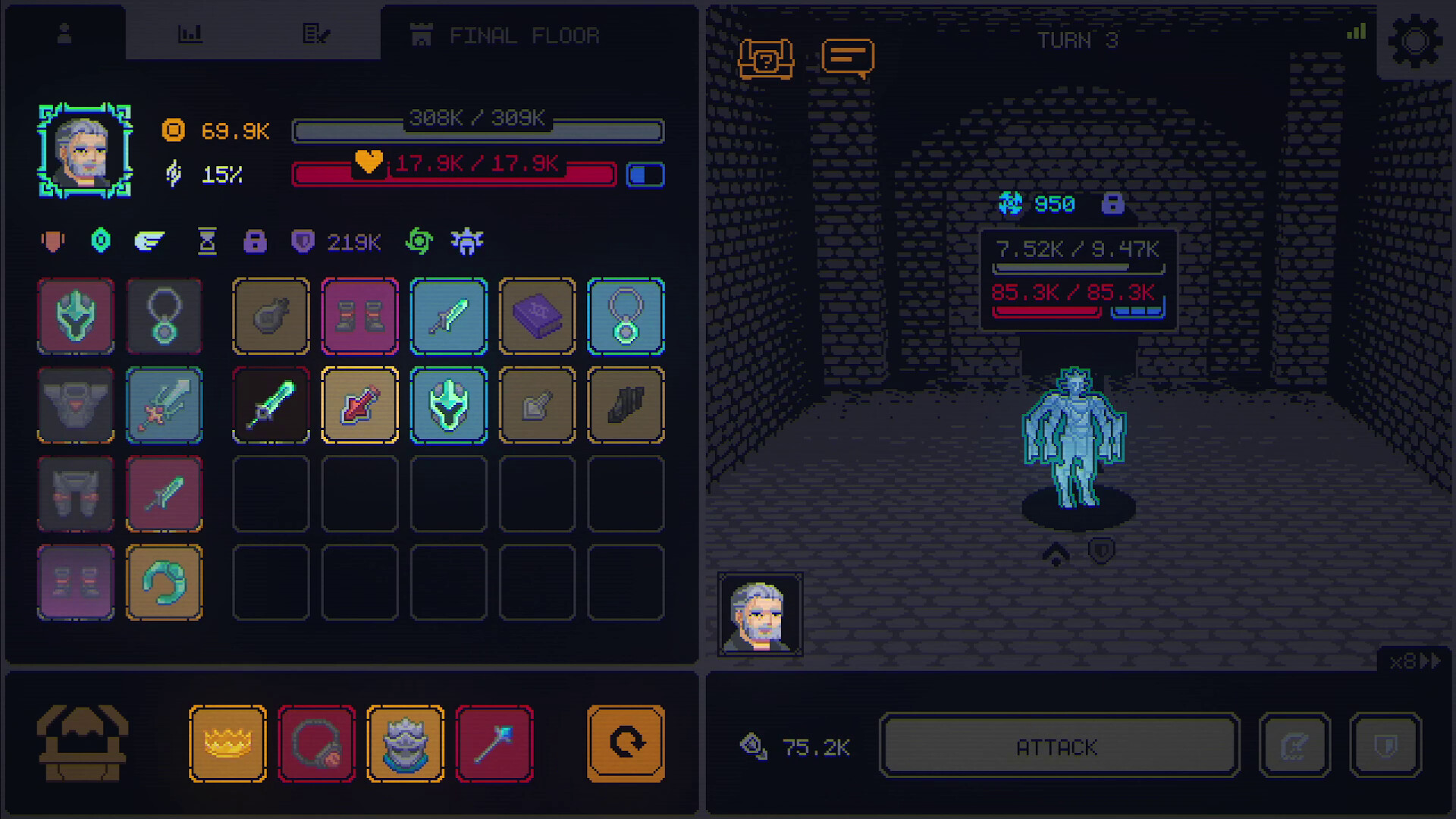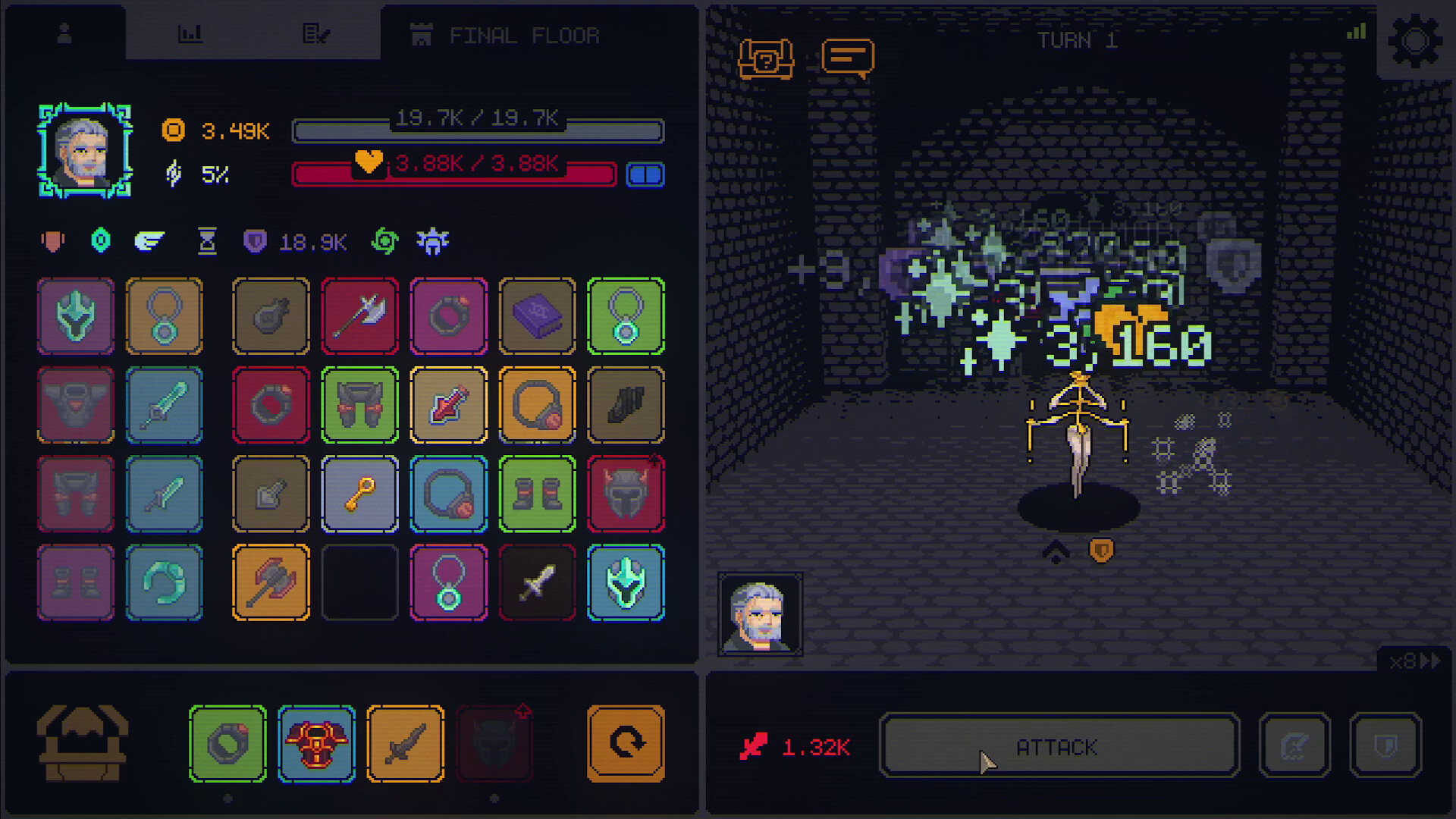 Entering the tower, you find yourself in fierce battles that require valuable loot items - armor, magic rings, weapons, and much more. These are essential tools for developing your unique builds while clearing the tower's floors.