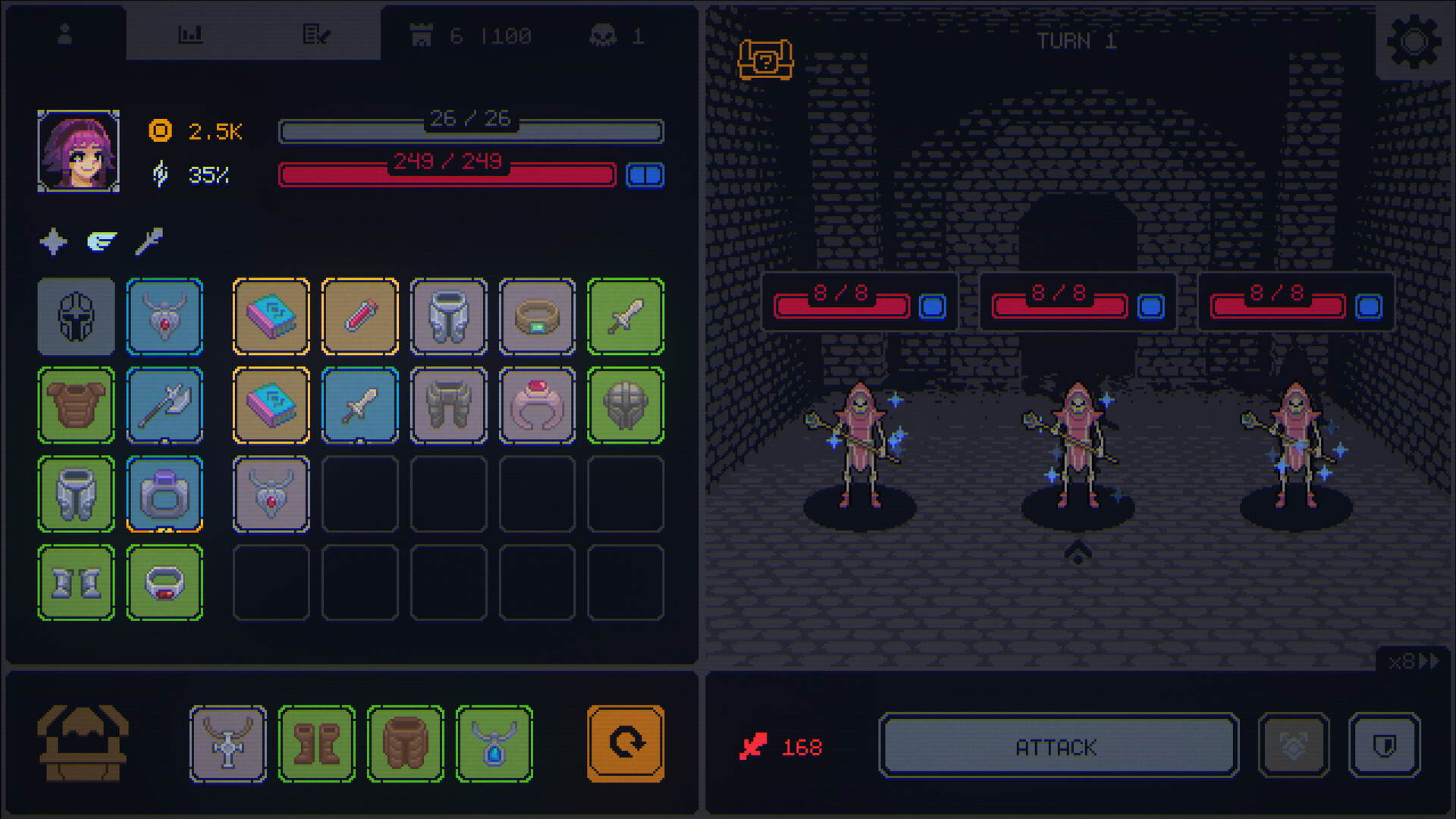 Use potions and tomes to boost your power, seek out reforged items for unique and enhanced gear, and banish excess loot to refresh the shop with better options. Make the most of every item and be ready for any enemy.