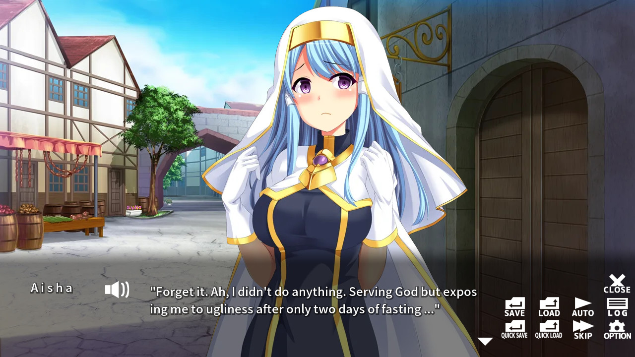 Characters ・Aisha Deirda Age: 21 - Height: 1.55m (5' 1") - BWH: 90-59-87 A pure-hearted cleric specialized in healing and support spells. Even though she doesn't enjoy fighting, she explores dungeons in order to make a living.