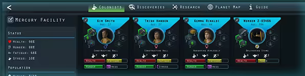 Uncover additional colonists, robots, and discoveries hidden in collapsed sections of the Mercury Facility.