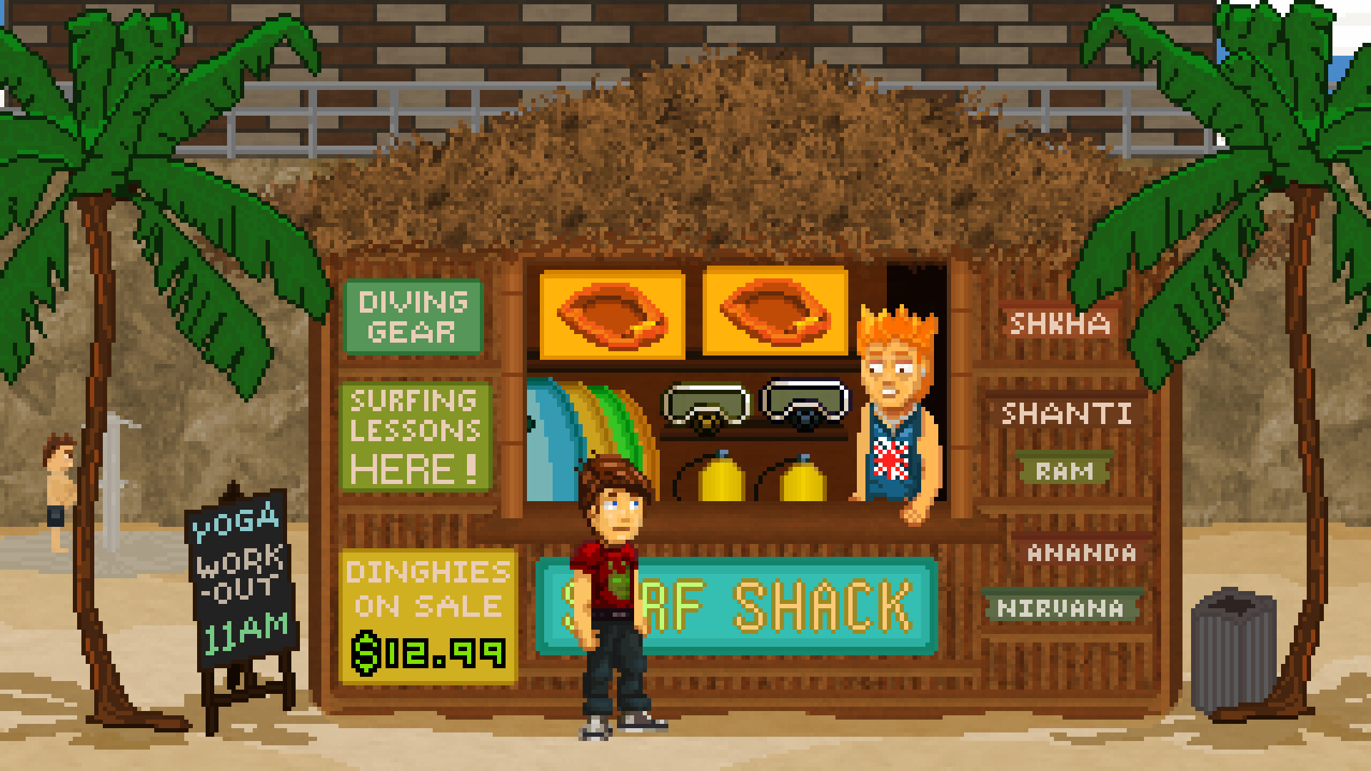 Mikey and Grover's Unexpected Adventure is a point and click adventure, featuring retro hand drawn pixel art and animations.