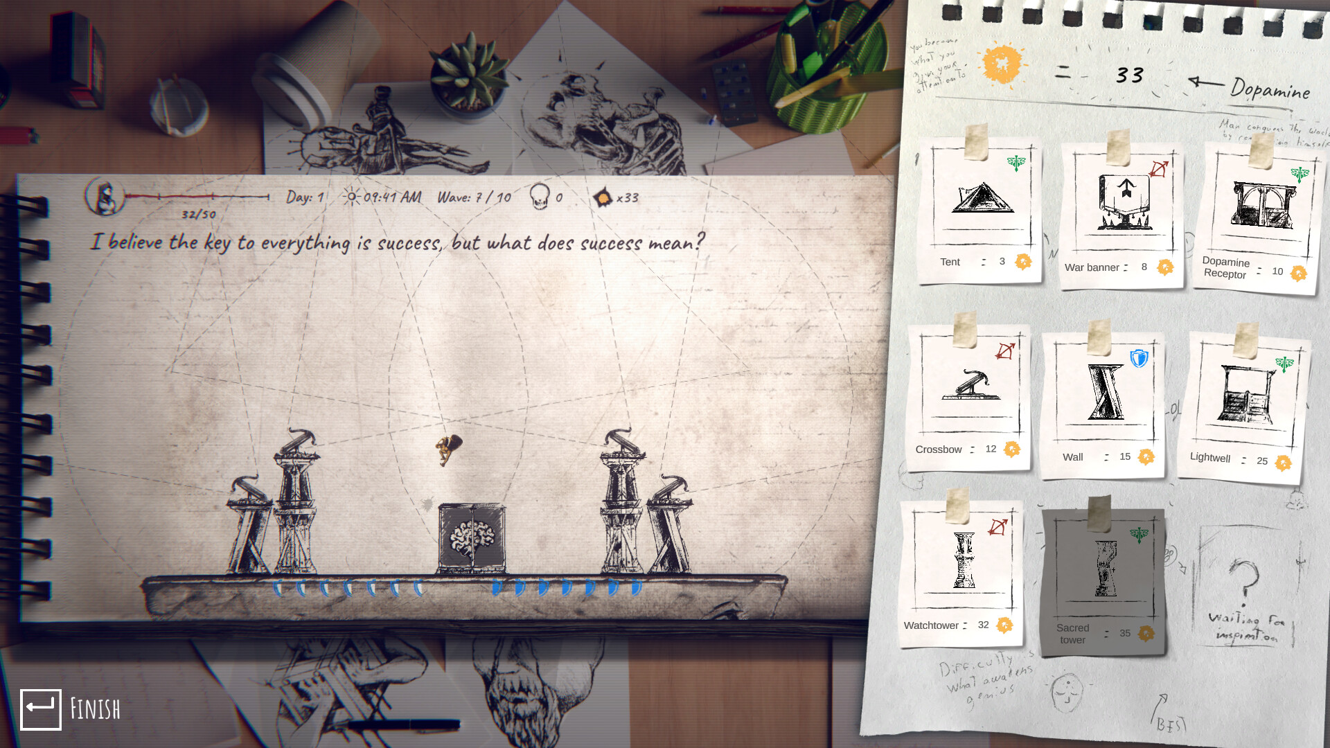 A psychological roguelite and tower defence with hand-drawn graphics. Customize your build and choose your own playstyle - strategic or fast-paced action, it all depends on your decisions, become the architect of your mental stronghold.