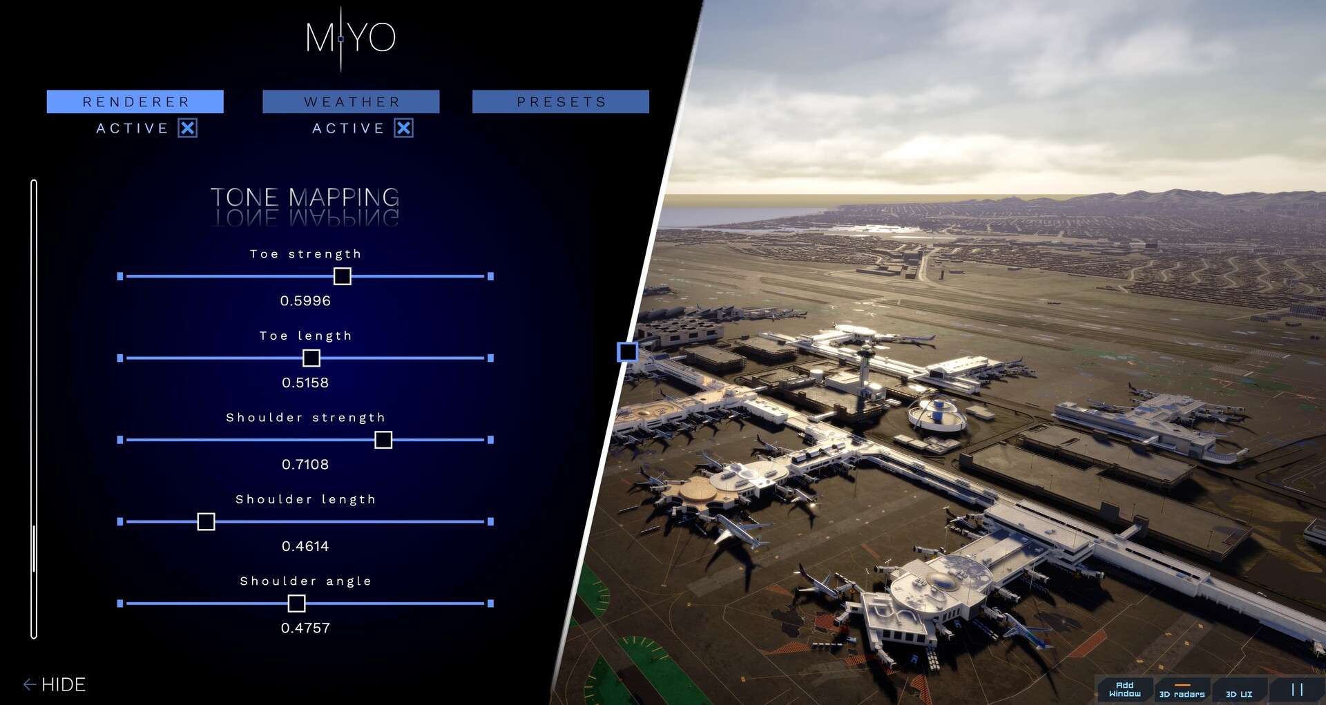 MIYO enables you to fine-tune every aspect of the simulator’s visuals: