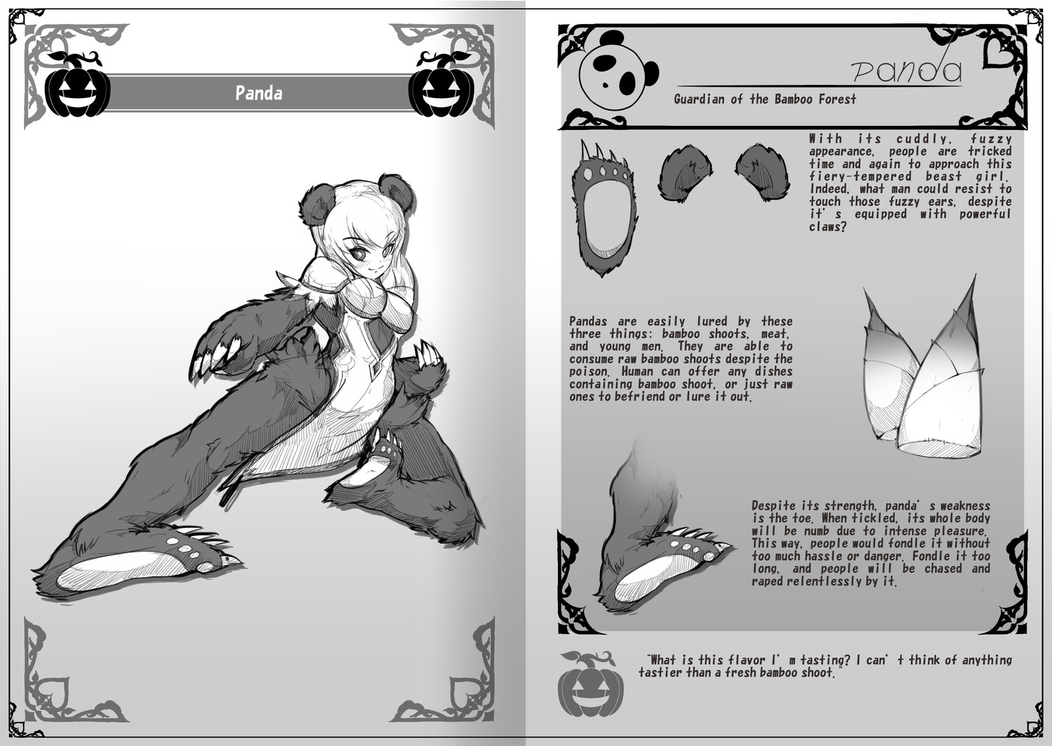 This book is part A of Halloween Sketchbook, a total of 18 pages of artbook, with a total of 6 monster girls with their own H-Scene. Please take a look. B/W