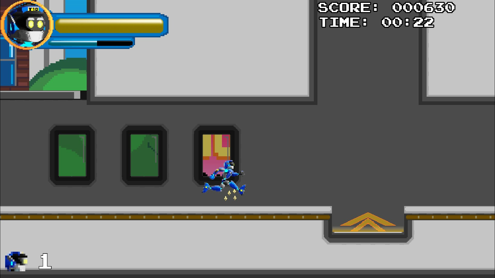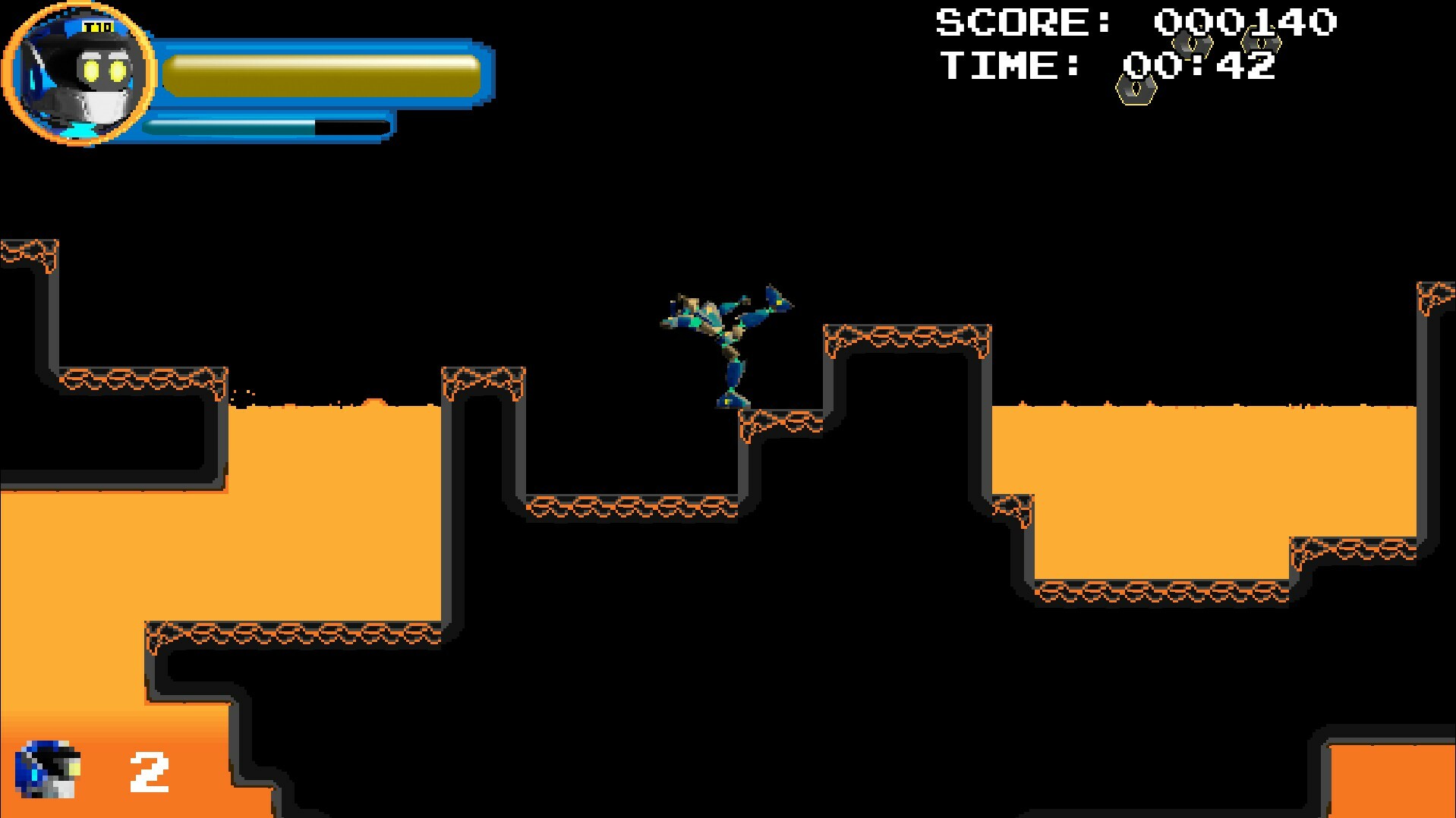 Race to the finish! A short 2D platformer! Collect metal to upgrade your health and find new moves to use hidden in the levels!