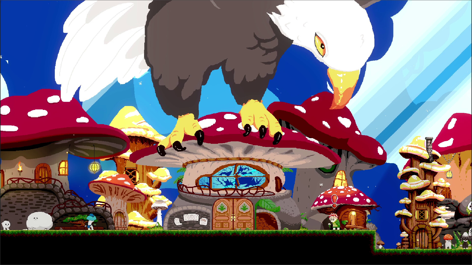 Play as a mushroom on a quest to save their village! Meet wacky characters and wield the Blade of Grass: a magical sword you can use to scale walls and swing around danger. Watch as it grows to comical lengths and stop the bird that captured the mushroom people! 🍄🗡️