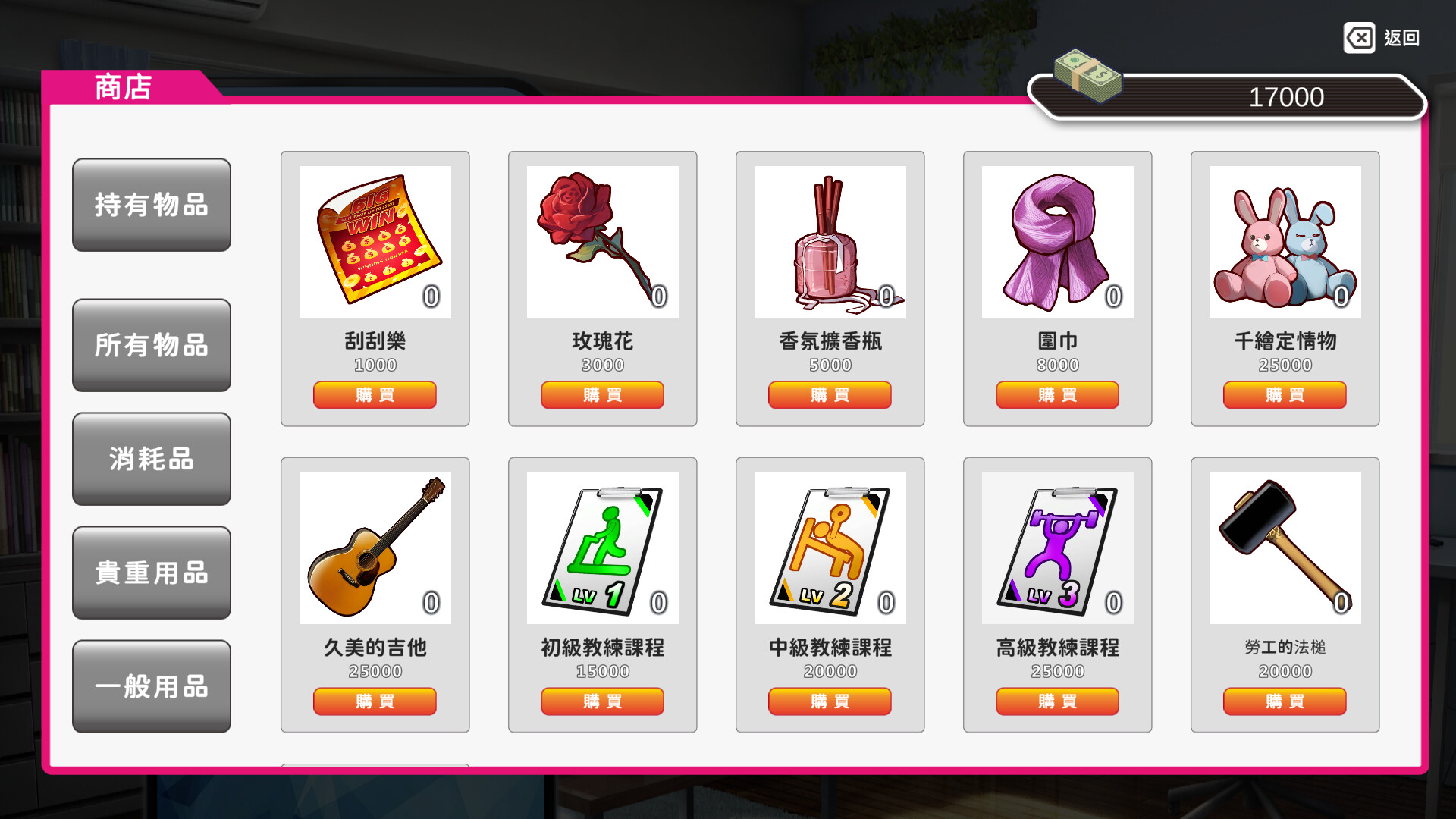 In the shop, you can exchange the money you've earned for various items that help you improve faster or increase the affection of female characters.