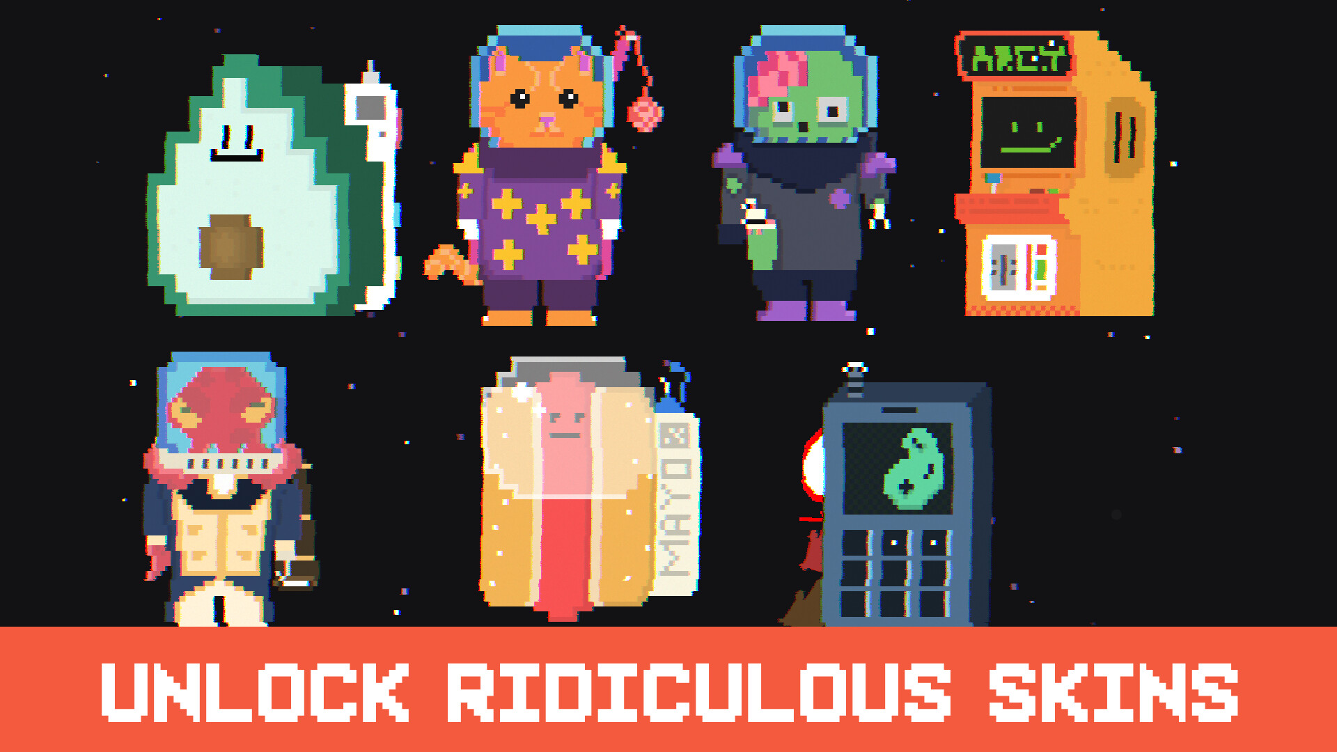 Unlock weird and increible skins, you can play as a Double Cheese burger, as a Avocado and even as a Rubber Duck!!