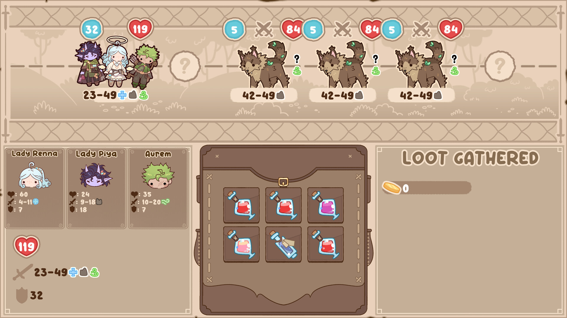 Gather herbs and brew powerful potions as you travel a magical world and forge a party of intriguing companions to defeat the demon lord in this cozy fantasy adventure game!