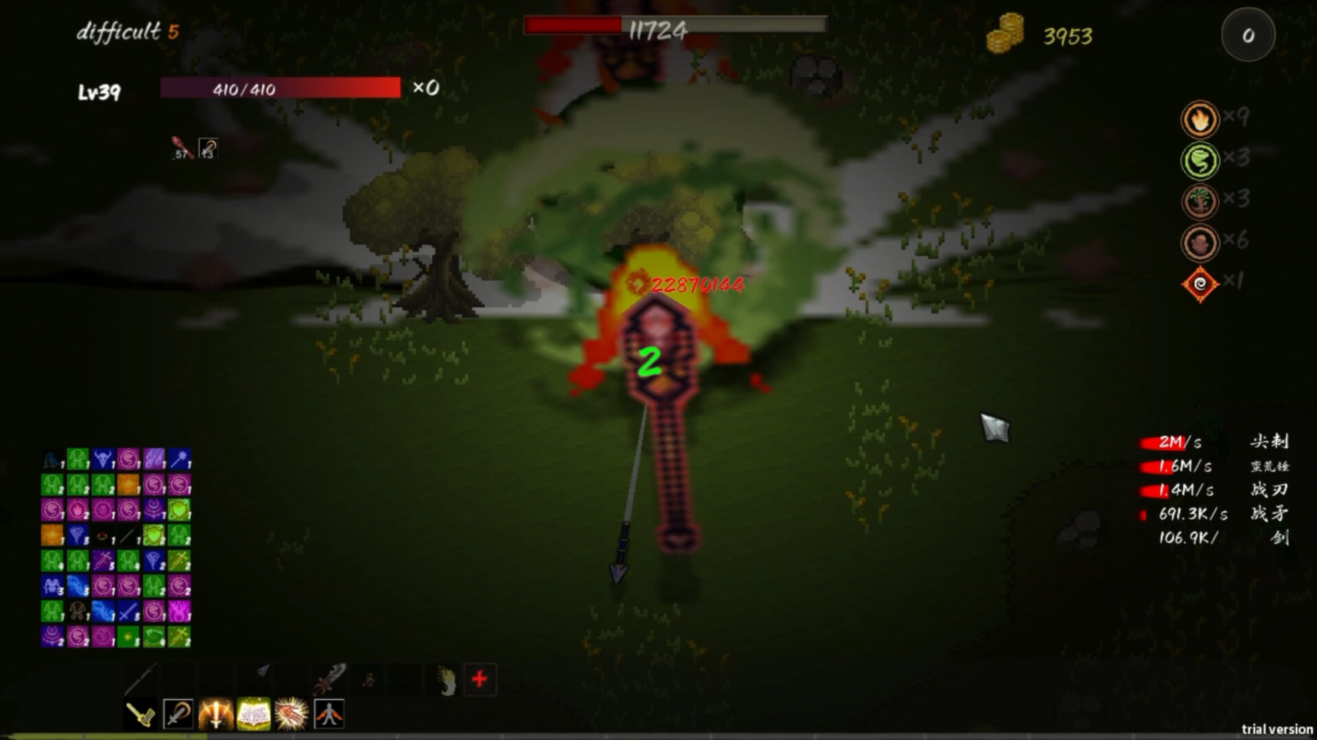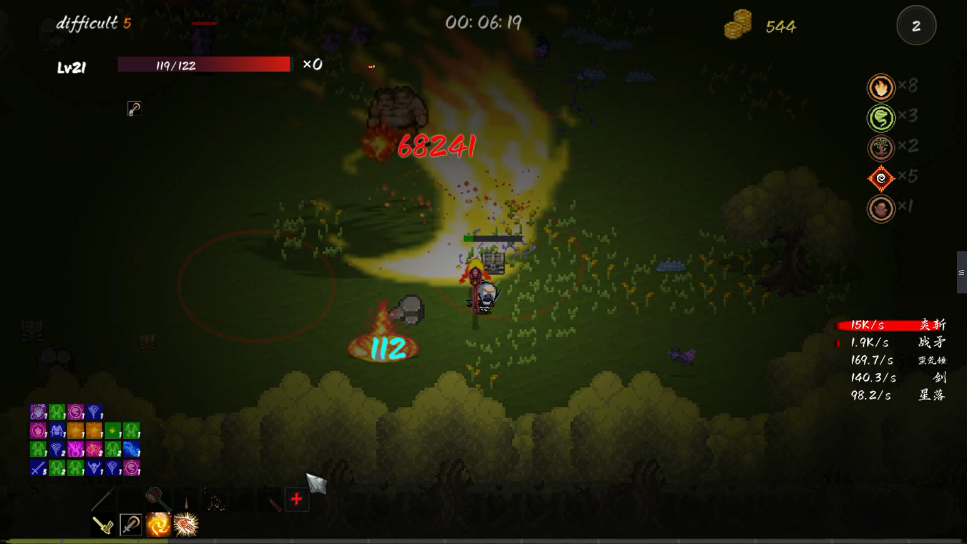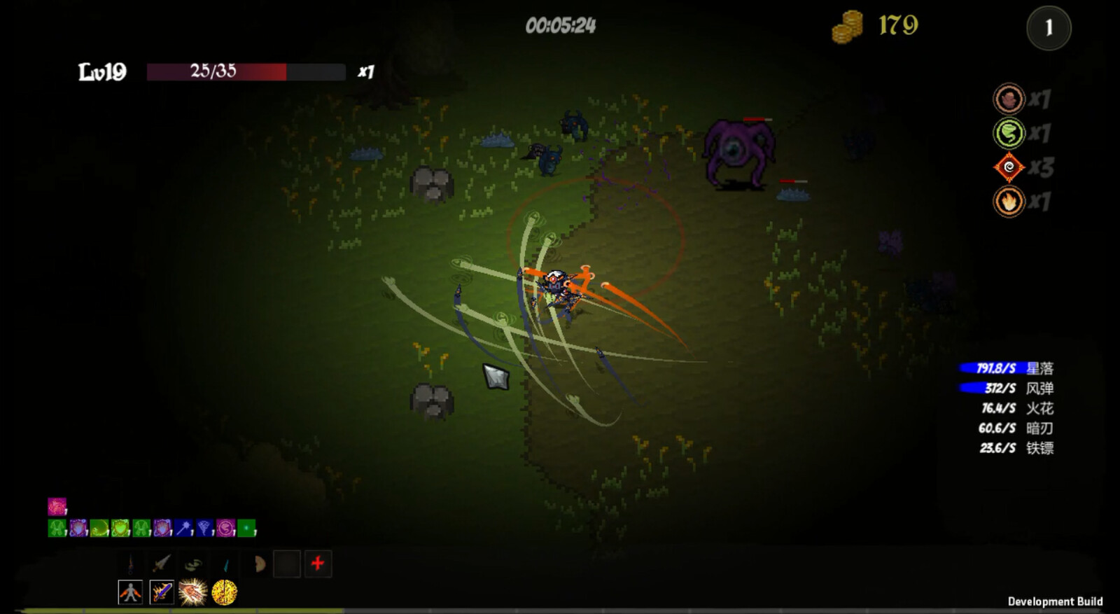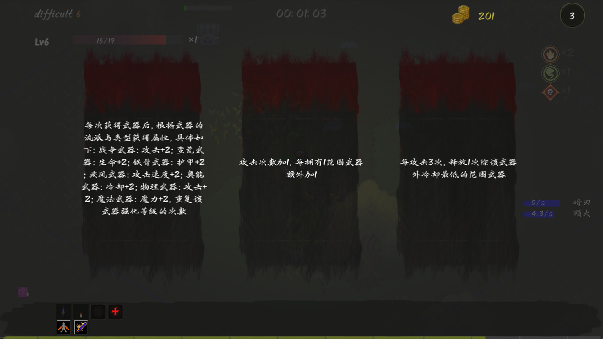 Please note that!!! This game has significant differences except that monster generation is a survivor type, and it is almost impossible to complete the game using traditional survivor thinking The skill system of this game is completely different from that of vampire survivors, more like the potato characteristics of Potato Brothers, mainly divided into three types: growth class, real-time combat power class, and attribute class. There are conversion relationships between attribute classes (1 dodge=2 cooldown, 1 cooldown=2 attack speed, i.e. 1 dodge=2 cooldown=4 attack speed). There are also more attribute conversion relationships in the game, and we look forward to your discovery The weapon system of this game is more like the linkage between legendary equipment and corresponding skills in Diablo III. By enhancing weapons to obtain special effects (similar to legendary equipment affixes), you can construct your weapon system through special effects, such as triggering high cooling and high damage weapons with high-frequency and low damage weapons, or building weapon loops (the release of one weapon triggers the release of other weapons, and then triggers the weapon again through the special effects of other weapons to form a loop)