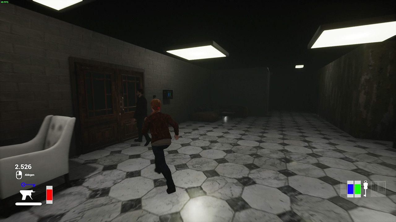 Goal: Try to escape the building you are trapped inside. Therefore, you will need three fuses (red, green and blue) which are distributed randomly in the rooms. To search the rooms, you must crack the lock with your pickgun (which you always have along with you) in case you don’t have the right key with you fortuitously. Using the pickgun also slowly reduces its performance. But don't worry ... you can restore the pickgun's performance during the game.